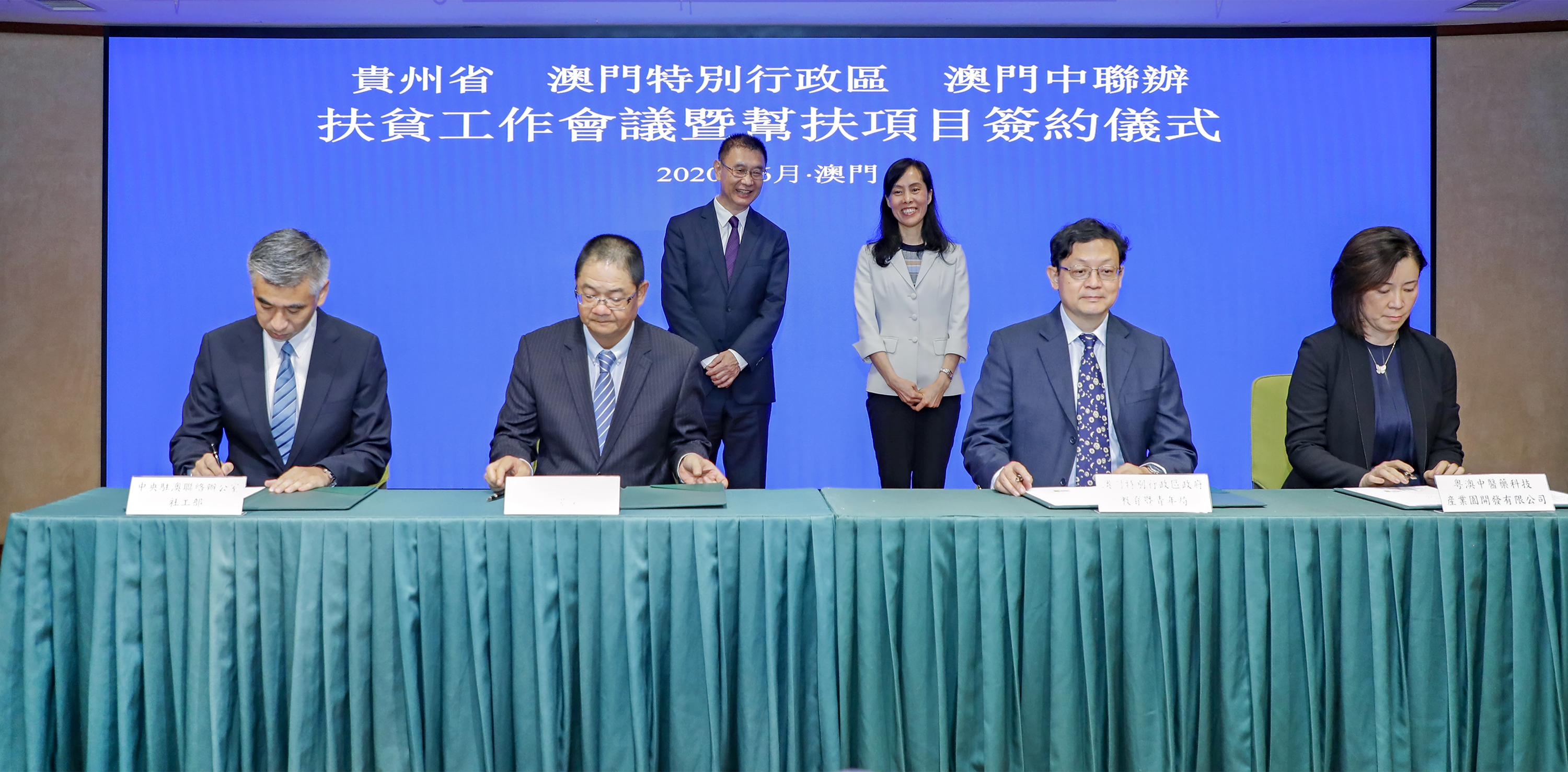 6月23日,澳門特區政府、中央政府駐澳門特別行政區聯絡辦公室和貴州省政府召開扶貧合作工作會議暨幫扶項目簽約儀式,會議以視頻形式在北京、貴陽和澳門三地同時召開,國務院扶貧辦副主任洪天雲、特區政府社會文化司司長歐陽瑜、中央政府駐澳門特別行政區聯絡辦公室副主任姚堅、貴州省副省長吳強出席會議並見證2020年澳門幫扶從江項目協議視頻簽約。