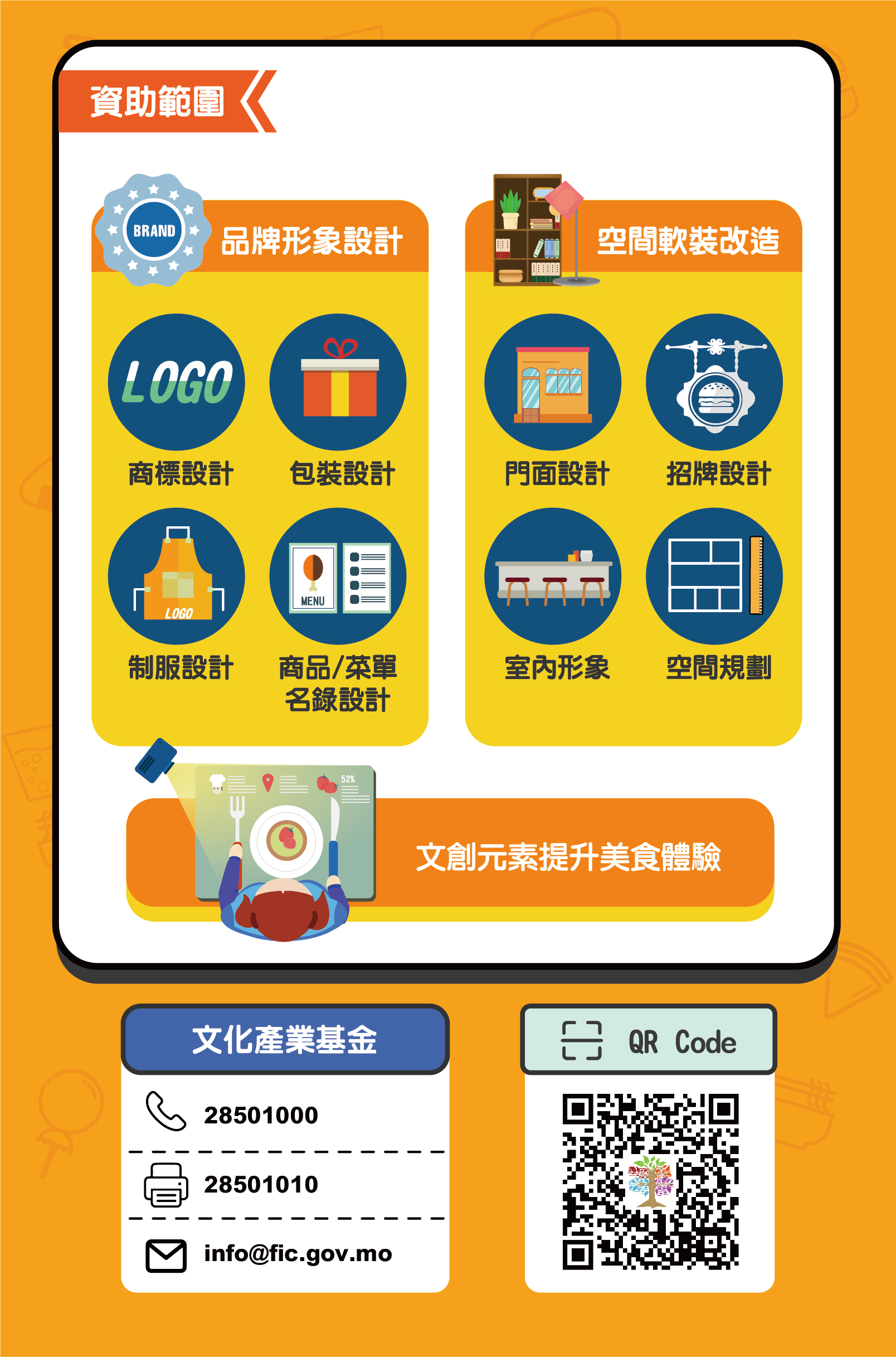 第三期“社區文創專項資助計劃”鼓勵文創企業與社區美食店合作,利用文創重塑具特色的社區美食店品牌,加強推廣社區的美食文化和人文故事,提升澳門美食的品牌形象,振興社區經濟。