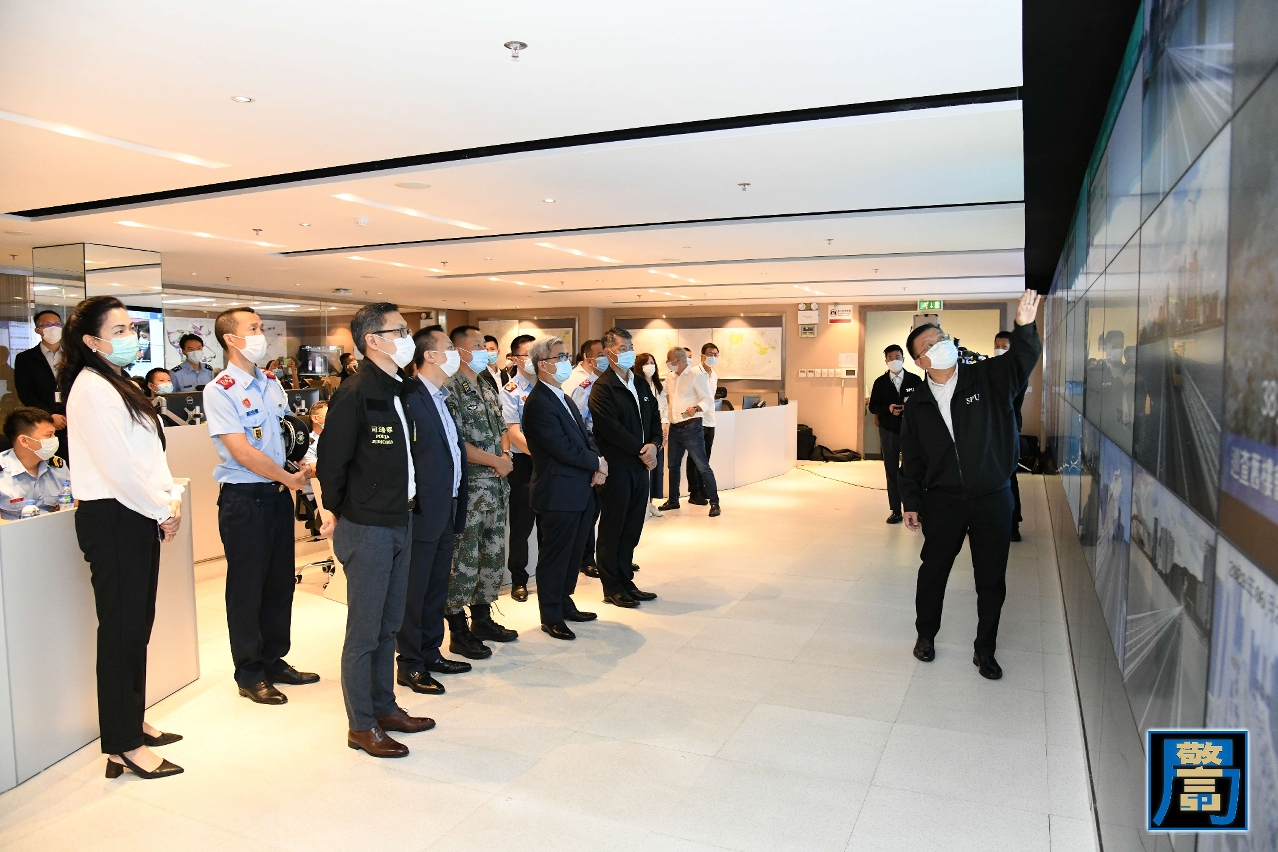 保安司司長黃少澤於演習期間巡視民防行動中心,了解演習的具體情況及細節安排。黃司長表示是此演習需在疫情下進行,難度有所增加,但民防架構成員亦能一如既往,認真對待,妥當安排,更喜見市民積極參與,證明大眾的民防意識已有所提高。
