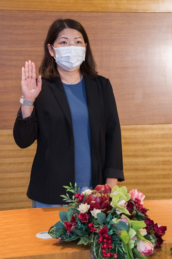 文化局新任副局長張麗珊今日(7月7日)在社會文化司司長歐陽瑜的監誓下就職,並由社會文化司司長辦公室主任何鈺珊、文化局局長穆欣欣、副局長梁惠敏及轄下各單位主管等人員出席見證。