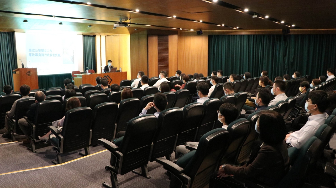 為加強廉政建設,持續提升工作人員的廉潔守法意識,澳門金融管理局繼續邀請廉政公署代表為員工舉辦“廉潔奉公”講座。
