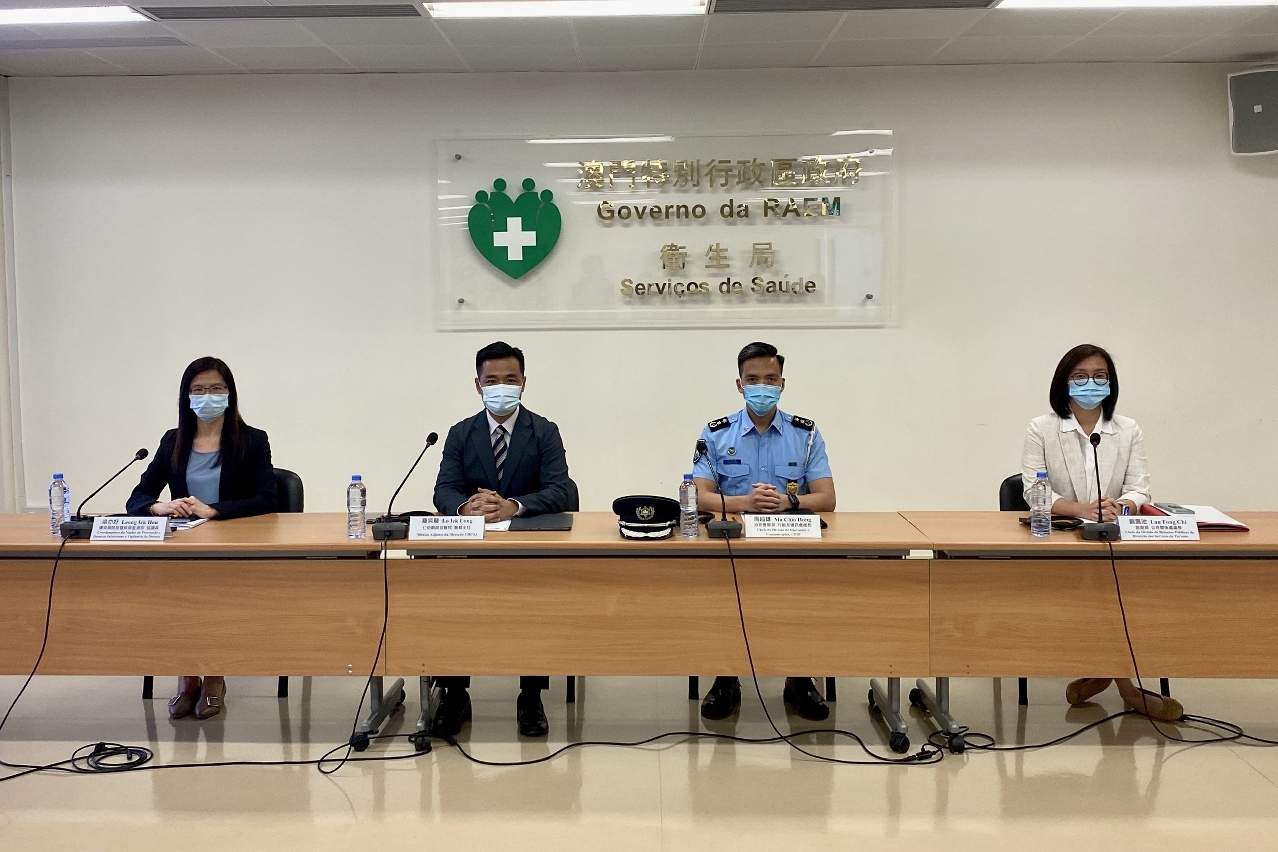 新型冠狀病毒感染應變協調中心(下稱應變協調中心)於今(17)日舉行例行記者會,仁伯爵綜合醫院羅奕龍醫務主任、治安警察局行動及通訊處馬超雄處長、旅遊局公共關係處劉鳳池處長、疾病預防控制中心傳染病防制暨疾病監測部梁亦好協調員共同會見傳媒。