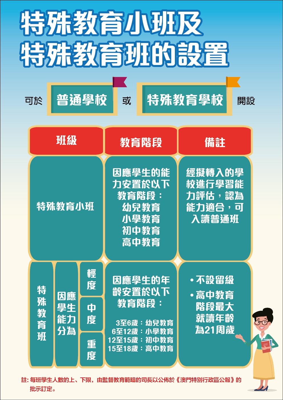 鑑於第33/96/M號法令規範的《特殊教育制度》實施已超過二十年,部分條文已無法有效配合澳門特殊教育的需求及發展。為給予有特殊教育需要學生有效的支援,以及促進特教的發展,特區政府制定了新的《特殊教育制度》行政法規,對有特教需要的有身心障礙的學生及資優學生的各項輔助措施作出了更加具體的規範。