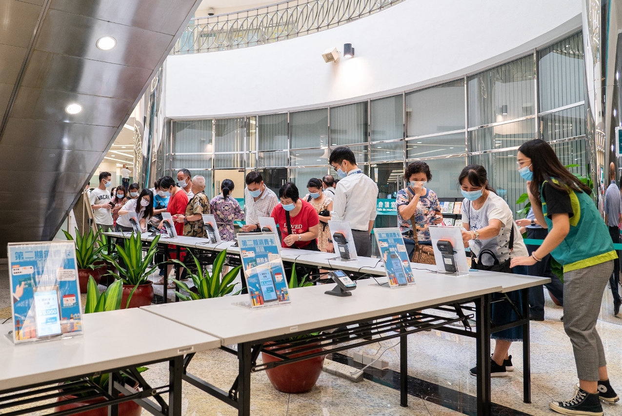今(27)日為第二期消費補貼的首個領取日,已持有第一期消費卡且餘額為零的居民,可由即日起至7月31日在全澳各區的190個加值服務點提前加值。截至下午6時,已有108,308張消費卡成功加值,另外經濟局正在跟進2宗加值不成功個案,初步懷疑是消費卡功能異常所致。