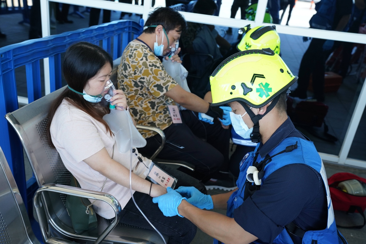 演習今日下午三時在外港客運碼頭舉行,演習模擬14號候船室檢票櫃台上的充電器著火,有濃煙冒出並有蔓延跡象,相鄰13號候船室的船公司人員發現火警,通知碼頭保安,保安人員隨即進行通報,當時候船室正有約10人正等待登船出境,而地面層也有旅客準備登岸入境。