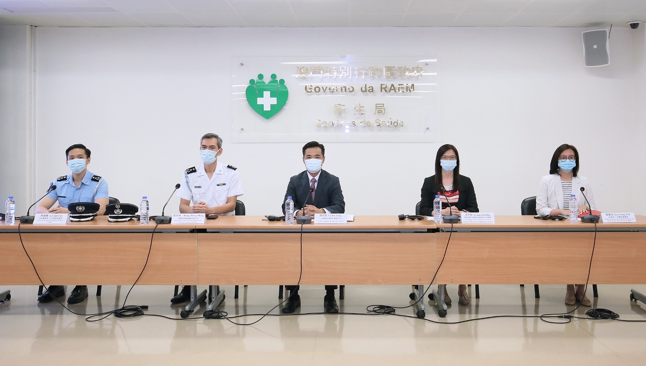 新型冠狀病毒感染應變協調中心(下稱應變協調中心)於今(29)日舉行例行記者會,仁伯爵綜合醫院羅奕龍醫務主任、海關澳門關檢處黃永明處長、治安警察局公共關係處李德輝處長、旅遊局公共關係處劉鳳池處長、疾病預防控制中心傳染病防制暨疾病監測部梁亦好協調員共同會見傳媒。