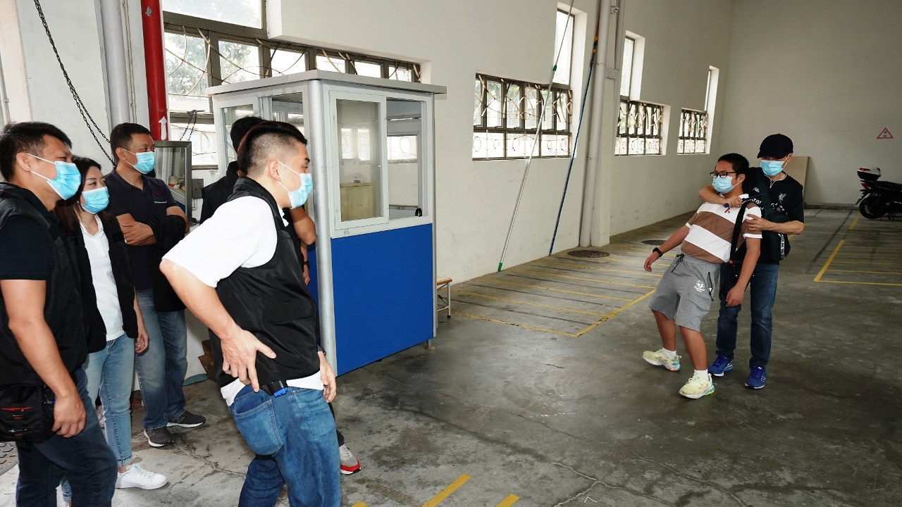 演習模擬社區接連發生多宗搶劫案,司警局搶劫罪案調查科刑偵人員展開調查後鎖定三名懷疑涉案男子,及後於筷子基廣大中學附近發現三人行蹤,遂上前截查。三人見狀立即逃向廣大中學,刑偵人員立刻追截,並通知正在附近執行職務的巡邏警車支援;其中一名劫匪在該校停車場出入口被刑偵人員截獲及帶返司警局調查,另外兩名劫匪則持刀脅持兩名途經學生逃入學校的舞台控制室。