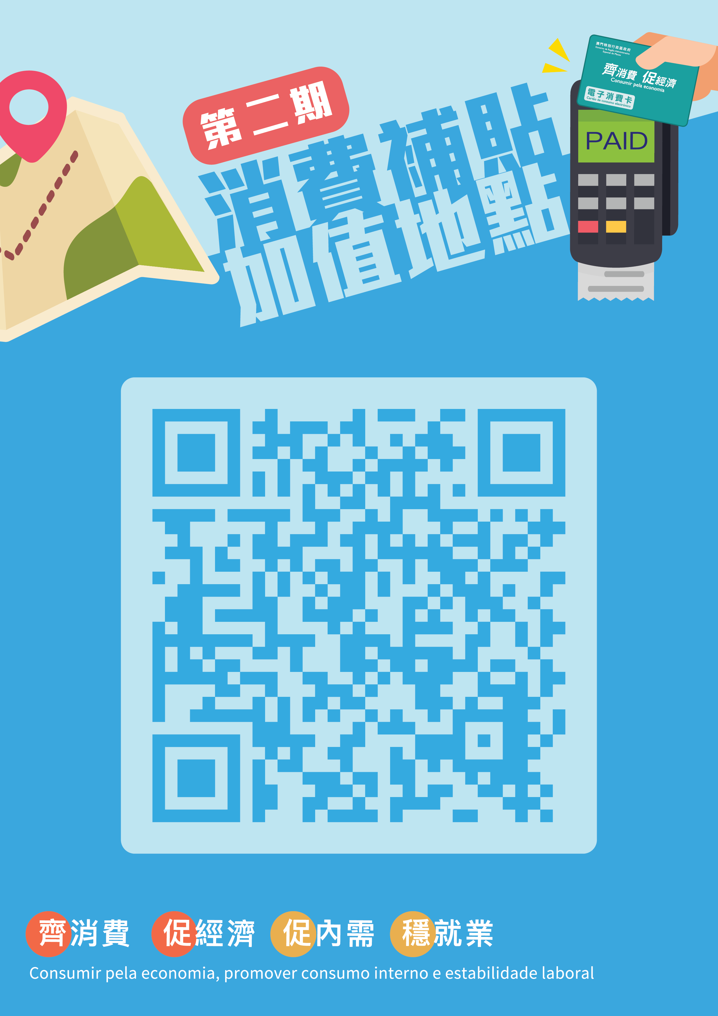 第二期消費卡今(1)日起開始使用,每位合資格居民可獲澳門元5,000元,使用期至本年12月31日,為期5個月。使用範圍與第一期相同,每日使用上限維持為300元。