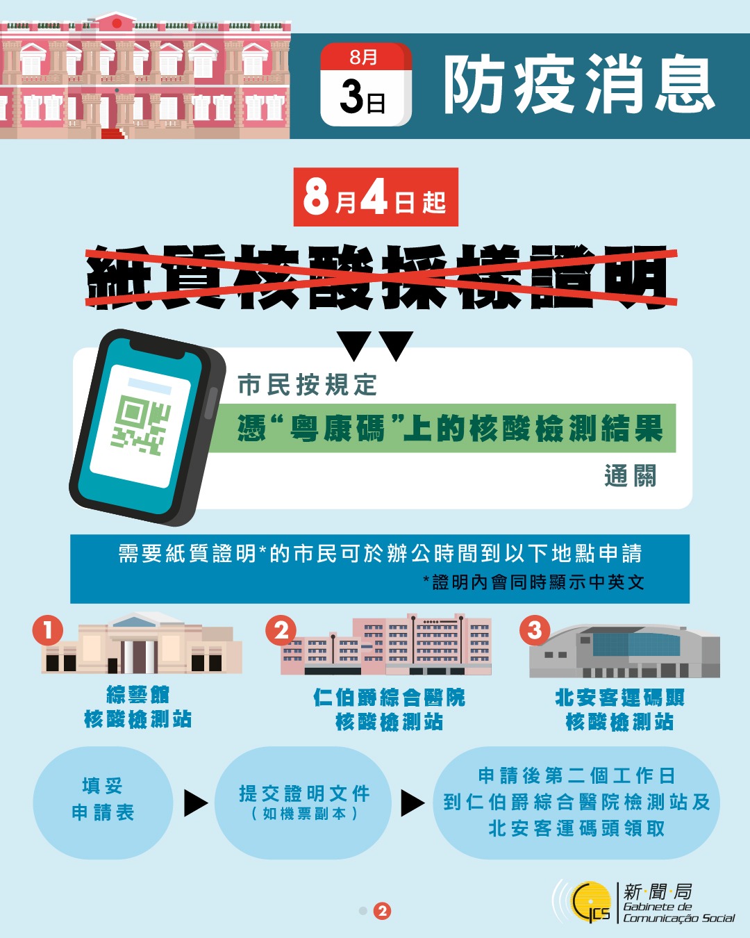 由香港入境澳門人士須持有72小時內的核酸檢測陰性證明