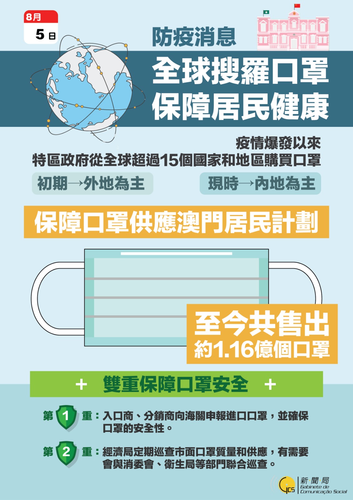 本澳連續129天無本地病例報告 當局設機制監管市面口罩質量和銷售情況