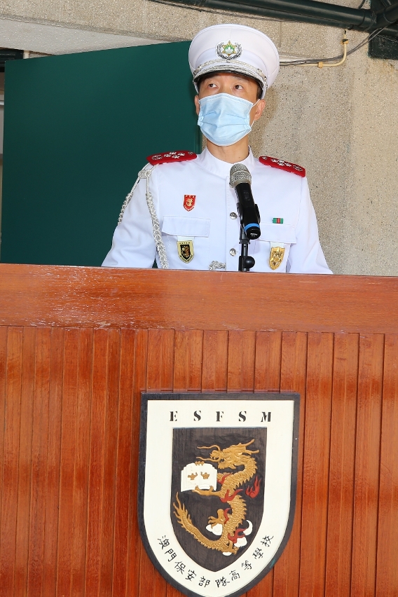 因疫情關係,典禮按照衛生局的防疫指引進行,校長在典禮上致詞表示,今年的新冠肺炎疫情給大家帶來嚴峻的考驗,疫情下,保安部隊和保安部門人員謹守崗位,無畏無懼,盡忠履職守護澳門,這正是學員們的學習榜樣。寄語即將奔赴前線的學員,謹記從警初心,定能戰勝困難。最後,校長叮囑畢業學員赤誠盡責,奉行保安當局提出的三個警務理念“主動警務”、“社區警務”和“公關警務”,履行好護法安民的職責。
