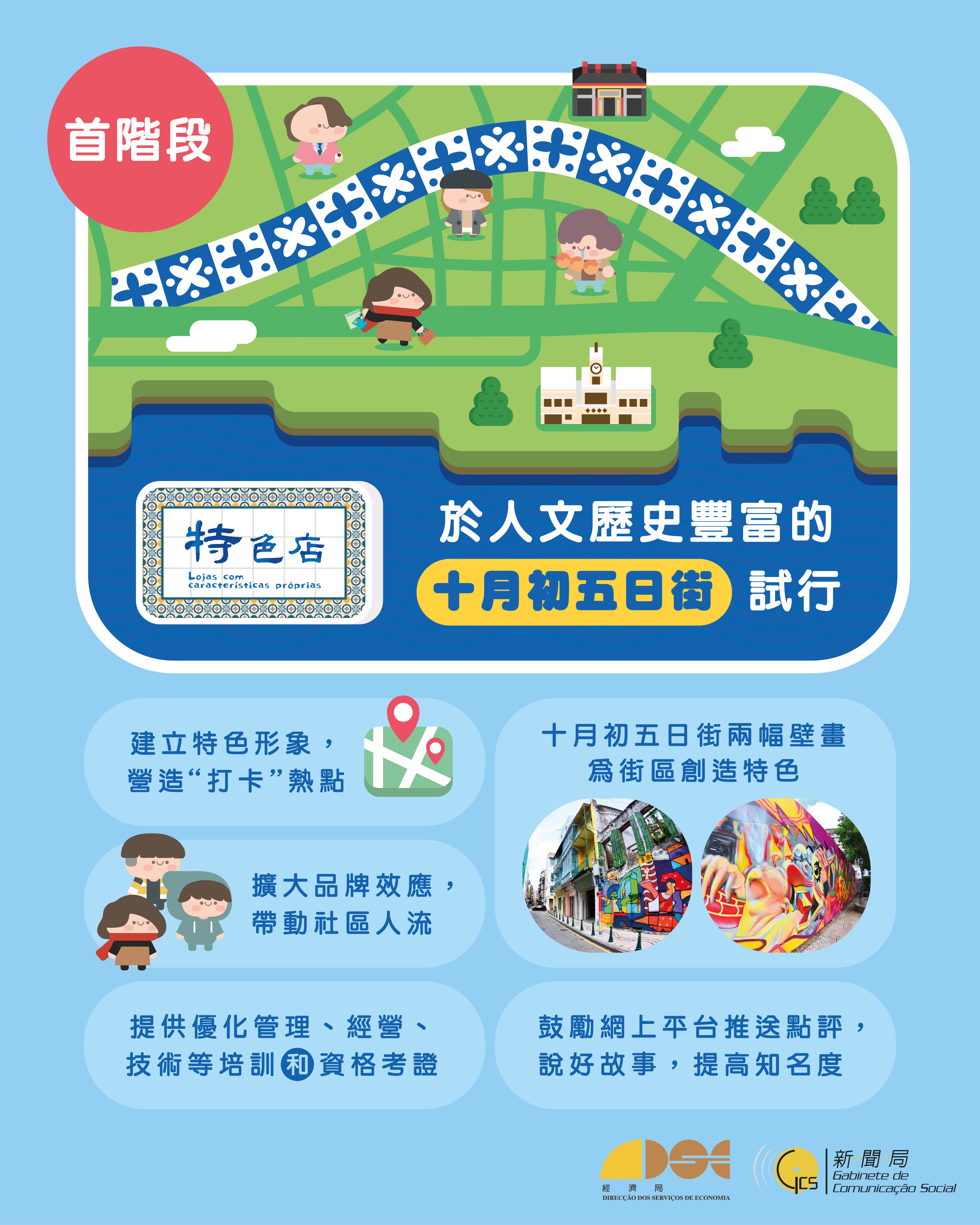 “特色店計劃”首階段於十月初五日街一帶試行,該街區人文歷史豐富,富特色的商店及食肆林立,對本地顧客及旅客均具吸引力。