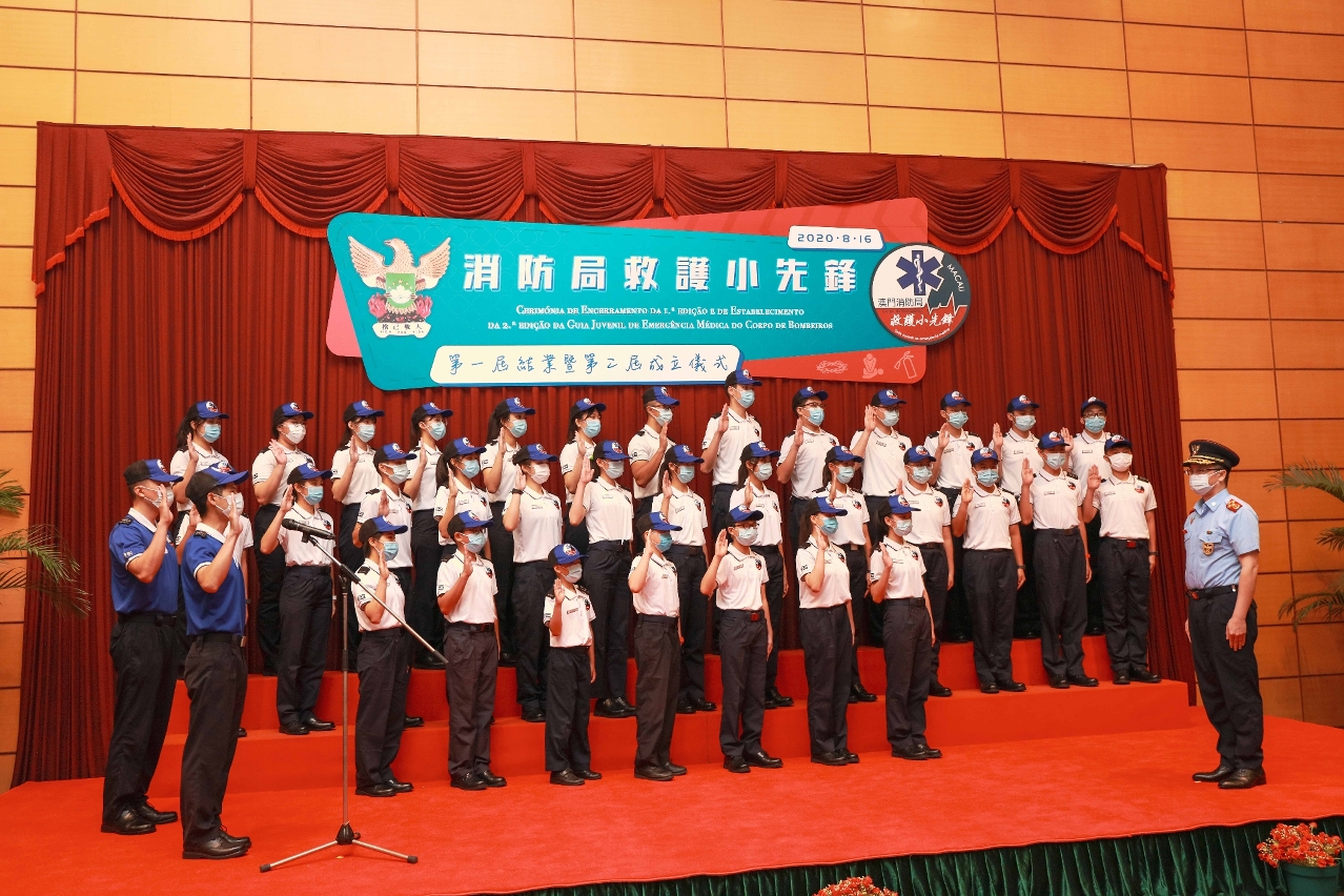 消防局一向十分重視青年的培育工作,促進青年身心健康成長及全面發展,持續開展青少年的培育工作,且在充分做好防疫措施的情況下,開展“救護小先鋒”消防少年團培訓課程及基礎知識課程,並於本年8月16日上午在消防局總部暨西灣湖行動站舉行“救護小先鋒”消防少年團第一屆結業典禮暨第二屆成立儀式。