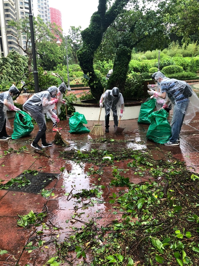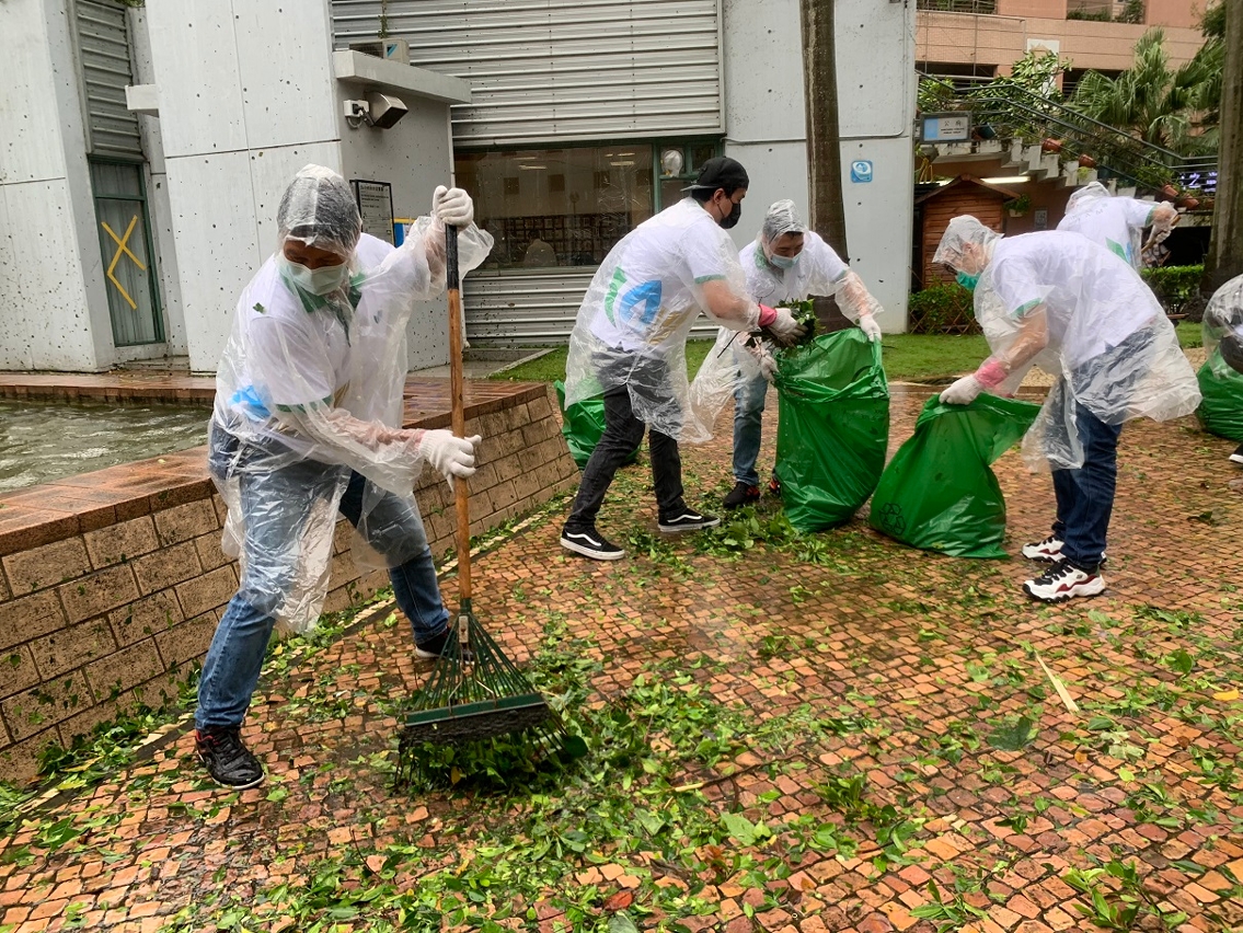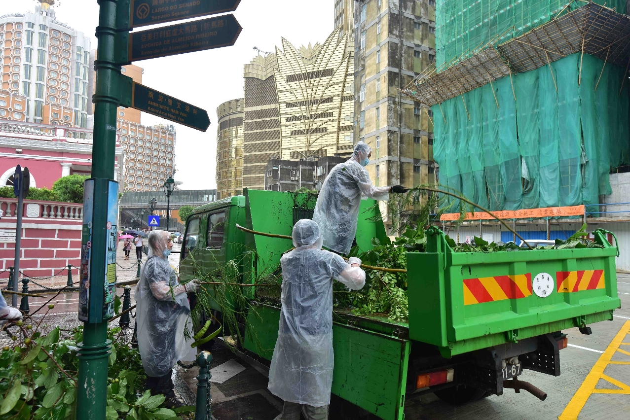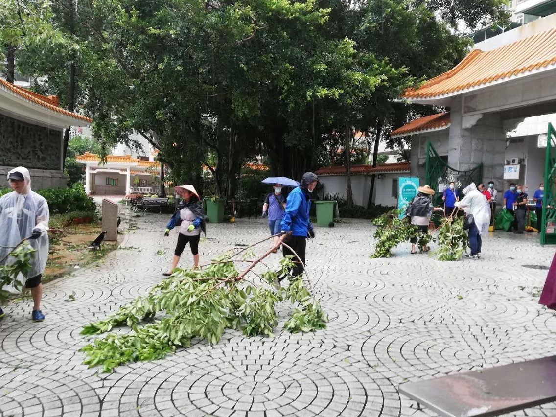 為加快推進風後清理工作,減輕前線人員工作負擔,盡快重新開放市政公園,公職局、法務局、市政署、身分證明局、印務局及退休基金會等行政法務部門組織六隊義工隊,今分別到黑沙環市政公園、氹仔花城公園、中央公園、南灣八角亭、嘉思欄公園、石排灣郊野公園、路環恩尼斯花園等進行清理工作,共同合力,讓有關設施盡快回復原面貌,供市民使用。