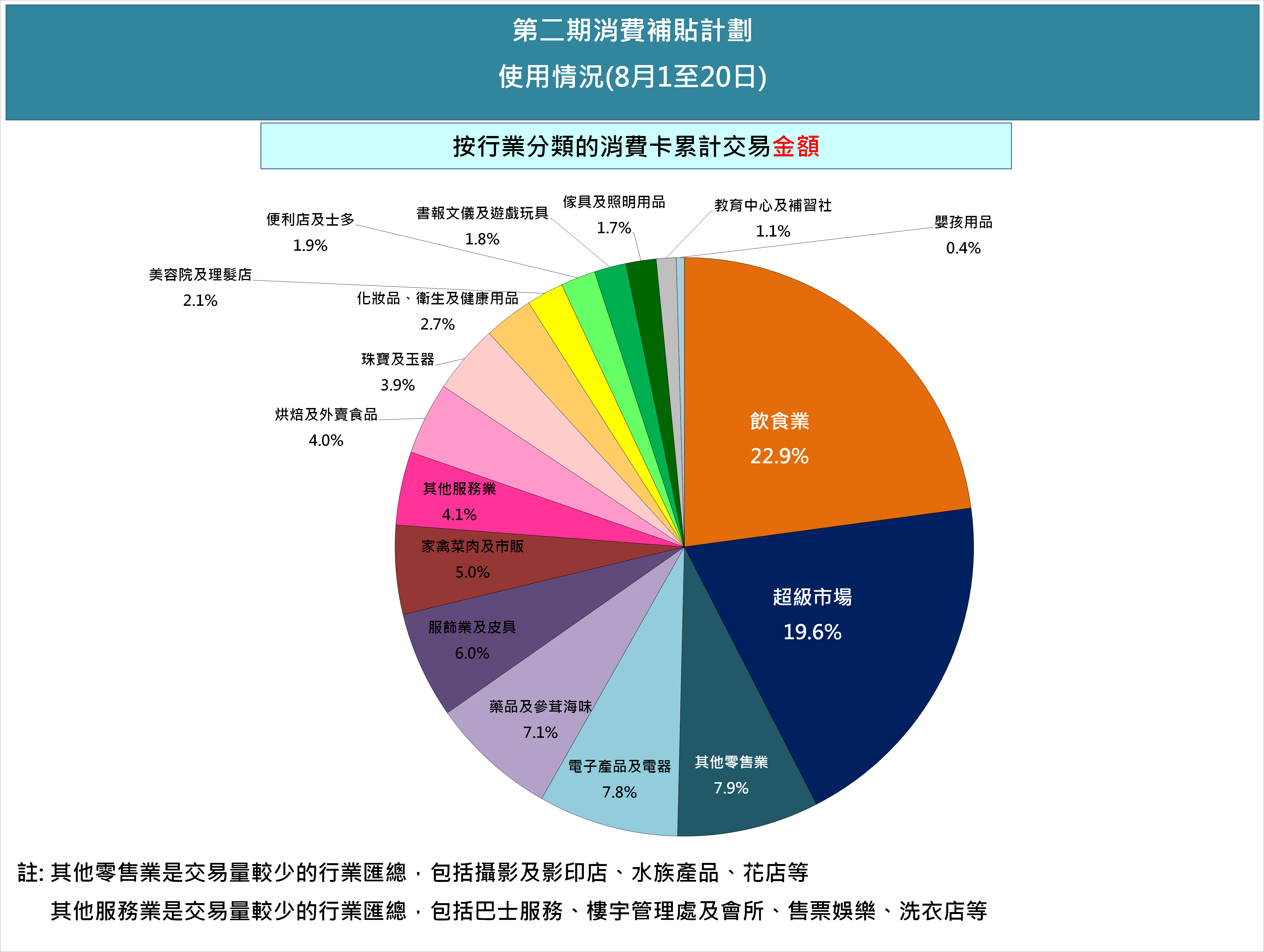 零售業方面,超級市場的交易額佔比最高,佔總體消費卡交易額的19.6%。