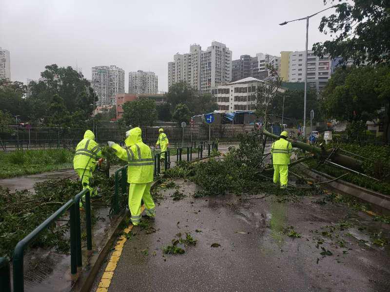 颱風過後,市政署持續加緊清理各區塌樹及斷枝,已優先處理影響行車路面或緊急的個案,移除被吹倒的樹木以及斷枝樹葉,以保障市民安全。至目前經已處理了超過一千株因颱風吹襲而受損的樹木,有關清理及樹木扶正等工作仍在加緊進行。另外,市政署管轄之綠化及休憩設施須關閉進行巡查及評估安全,當中有部分設施已逐步開放。
