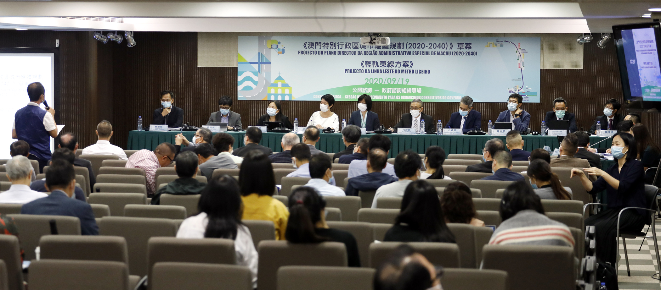《澳門特別行政區城市總體規劃(2020-2040)》草案及《輕軌東線方案》今日(19日)於馬交石炮台馬路33號多功能廳舉行政府諮詢組織專場諮詢會,共有20多個諮詢組織約80位委員出席。主要就職住平衡、社區設施配套、綠地及公共開放空間、商業及旅遊區配置、交通運輸,以及輕軌建設方案等發表意見和建議。