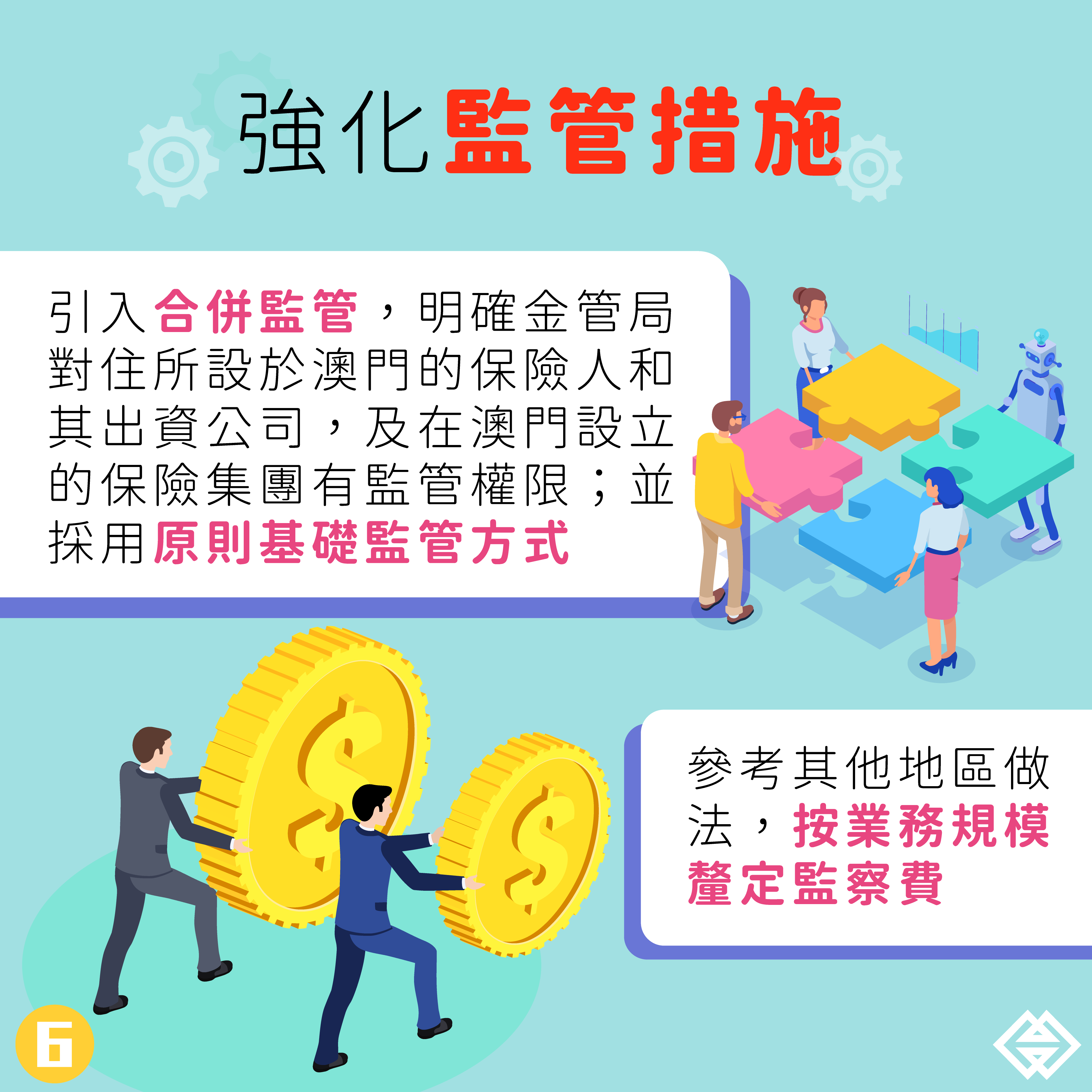 一、 提高設立保險人的申請條件及擴大對申請人的資格審查範圍,加強對保險業的風險管理、內部監控、預防和打擊清洗黑錢及反恐融資機制的要求,確保保險公司具備完善的管治政策;