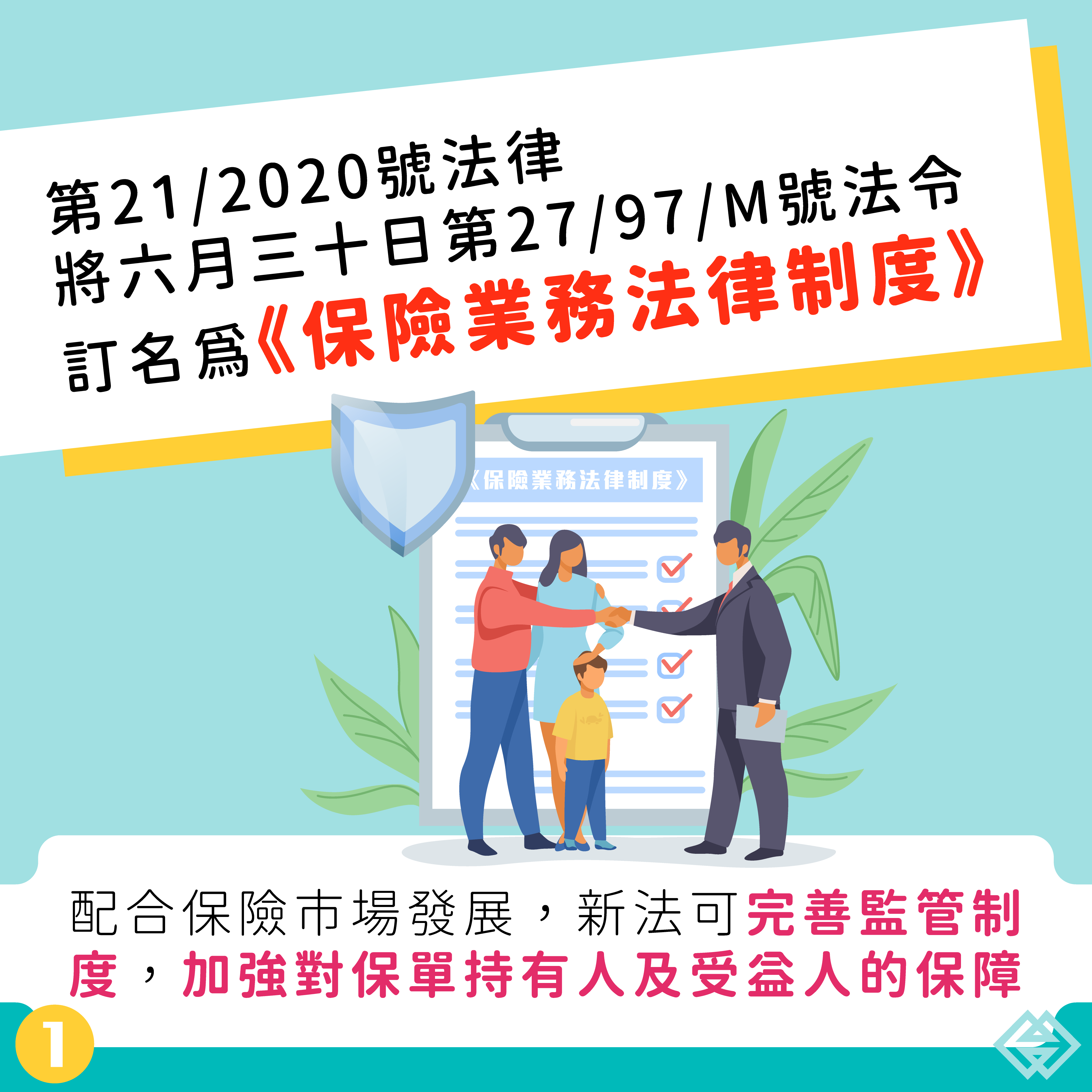 第21/2020號法律將六月三十日第27/97/M號法令訂名為《保險業務法律制度》。與原法令相比,本法律修訂的內容主要包括: