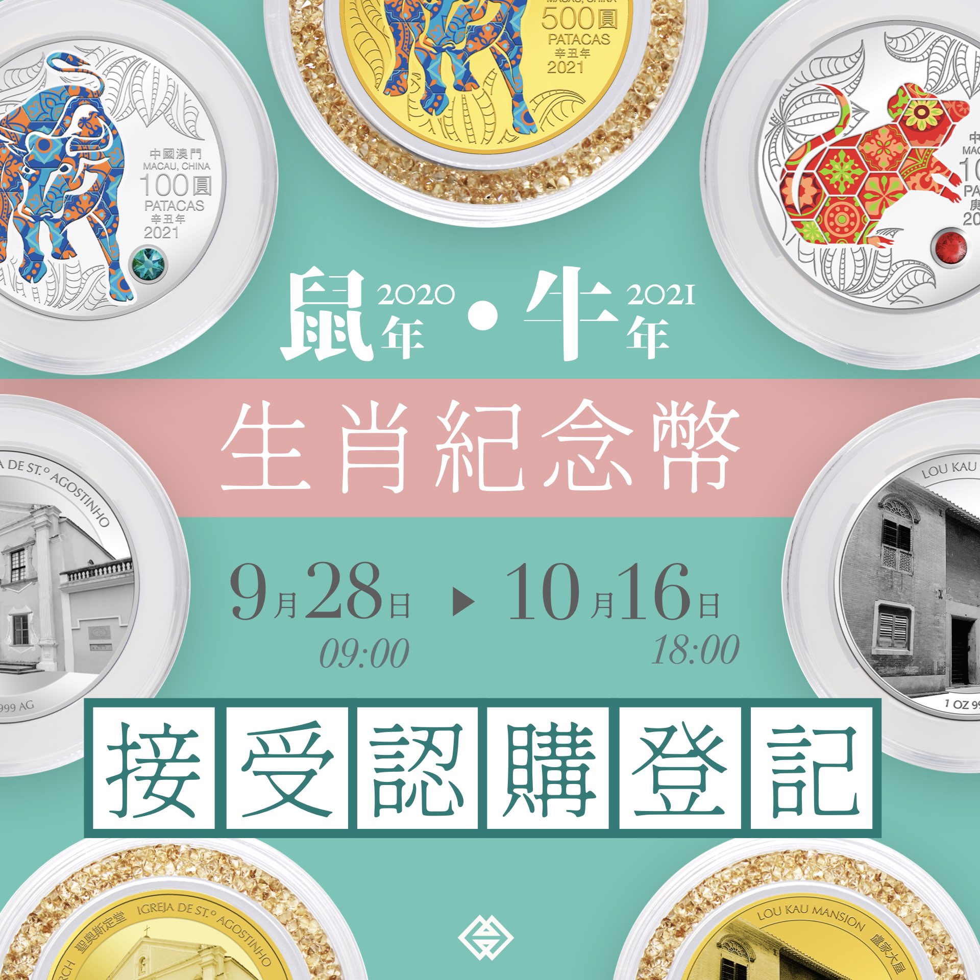 澳門金融管理局即將發行新一輪農曆生肖紀念幣系列,其中2020鼠年及2021牛年生肖紀念幣,將於下週一(28日)起接受網上認購登記。