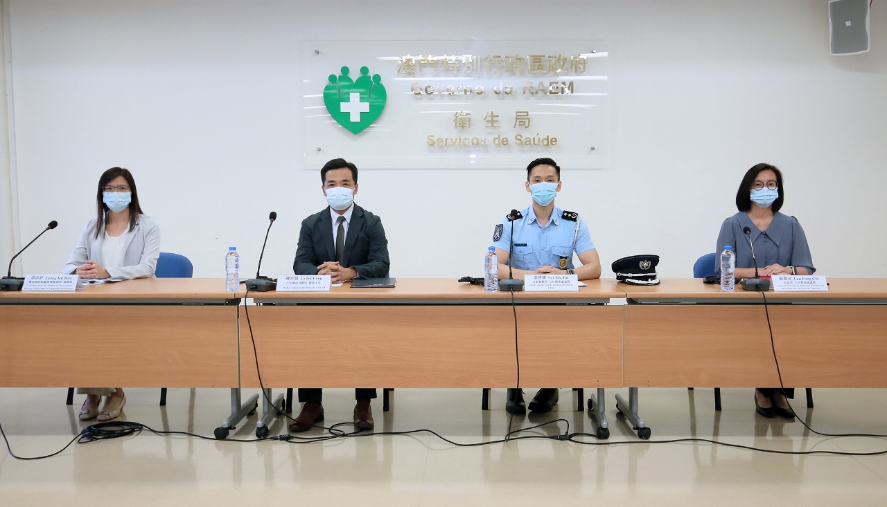 新型冠狀病毒感染應變協調中心(下稱應變協調中心)於今(28)日舉行例行記者會,仁伯爵綜合醫院羅奕龍醫務主任、治安警察局公共關係處李德輝處長、旅遊局公共關係處劉鳳池處長、疾病預防控制中心傳染病防制暨疾病監測部梁亦好協調員共同會見傳媒。