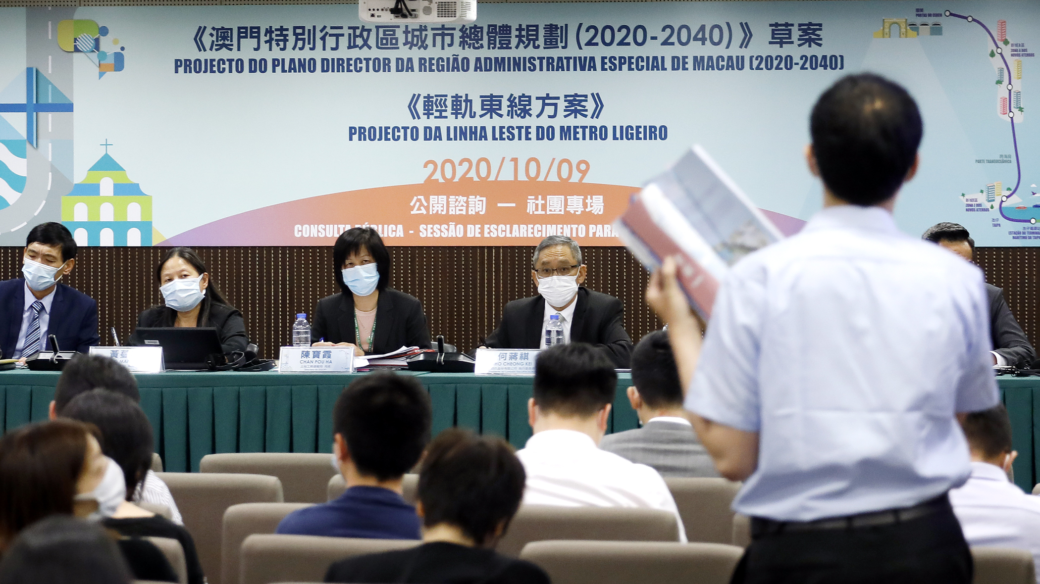 《澳門特別行政區城市總體規劃(2020-2040)》草案及《輕軌東線方案》昨今兩日(9日及10日)於馬交石炮台馬路33號5樓多功能廳先後舉行社團專場及第三場公眾諮詢會,分別有二十多個社團數十名代表及約100位市民參加。兩場諮詢會主要關注安老服務、保護山體、增加綠化面積,南西灣湖一帶景觀、內港防災和活化、鄰避設施、十八個規劃分區及土地用途次分類;亦有意見關注輕軌東線的客流及造價等。
