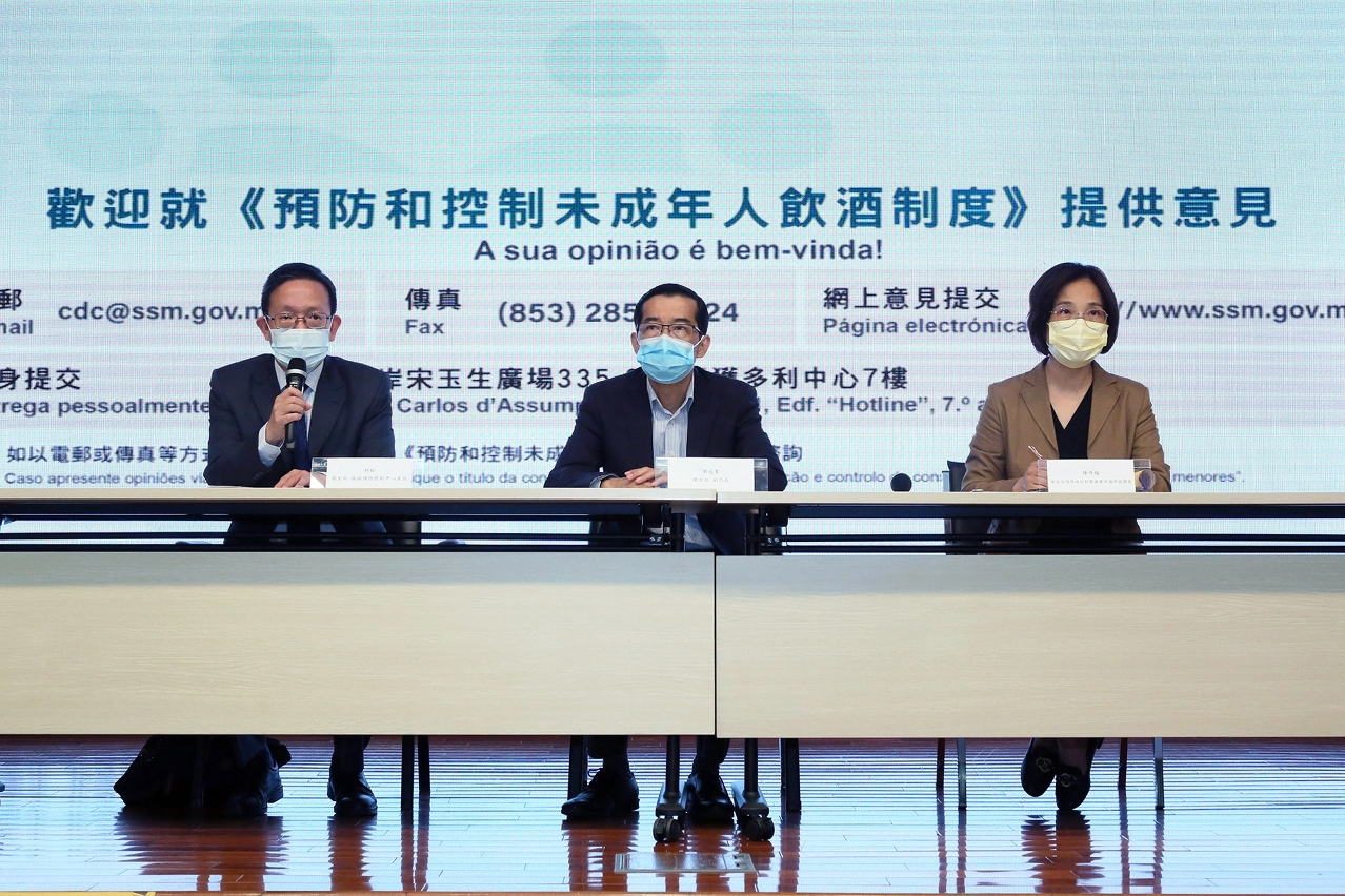 鄭成業副局長表示,特區政府一直關注青少年的酒精使用情況,自2003年起持續進行青少年飲酒情況監測,其中包括每5年進行一次澳門中學生健康行為調查,根據調查結果顯示,本澳青少年飲酒的情況呈上升趨勢。未成年人飲酒不僅嚴重影響健康,亦會構成成年後有害飲酒的重要因素,為了保障青少年的健康、減少青少年接觸及使用酒精飲料,特區政府已啟動控酒立法前期準備工作,參考國際經驗並結合本澳實際情況,擬立法禁止向未成年人售賣或提供酒精飲料。