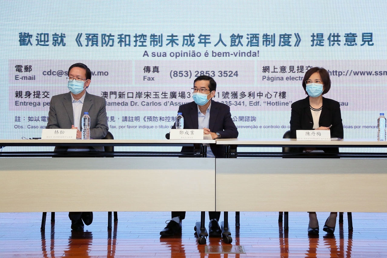 鄭成業副局長表示,特區政府一直關注青少年的酒精使用情況,自2003年起持續進行青少年飲酒情況監測,其中包括每5年進行一次澳門中學生健康行為調查,根據調查結果顯示,本澳青少年飲酒的情況呈上升趨勢。未成年人飲酒不僅嚴重影響健康,亦是成年後有害飲酒的重要因素,為了保障青少年的健康、減少青少年接觸及使用酒精飲料,特區政府已啟動控酒立法前期準備工作,參考國際經驗並結合本澳實際情況,擬立法禁止向未成年人售賣或提供酒精飲料。
