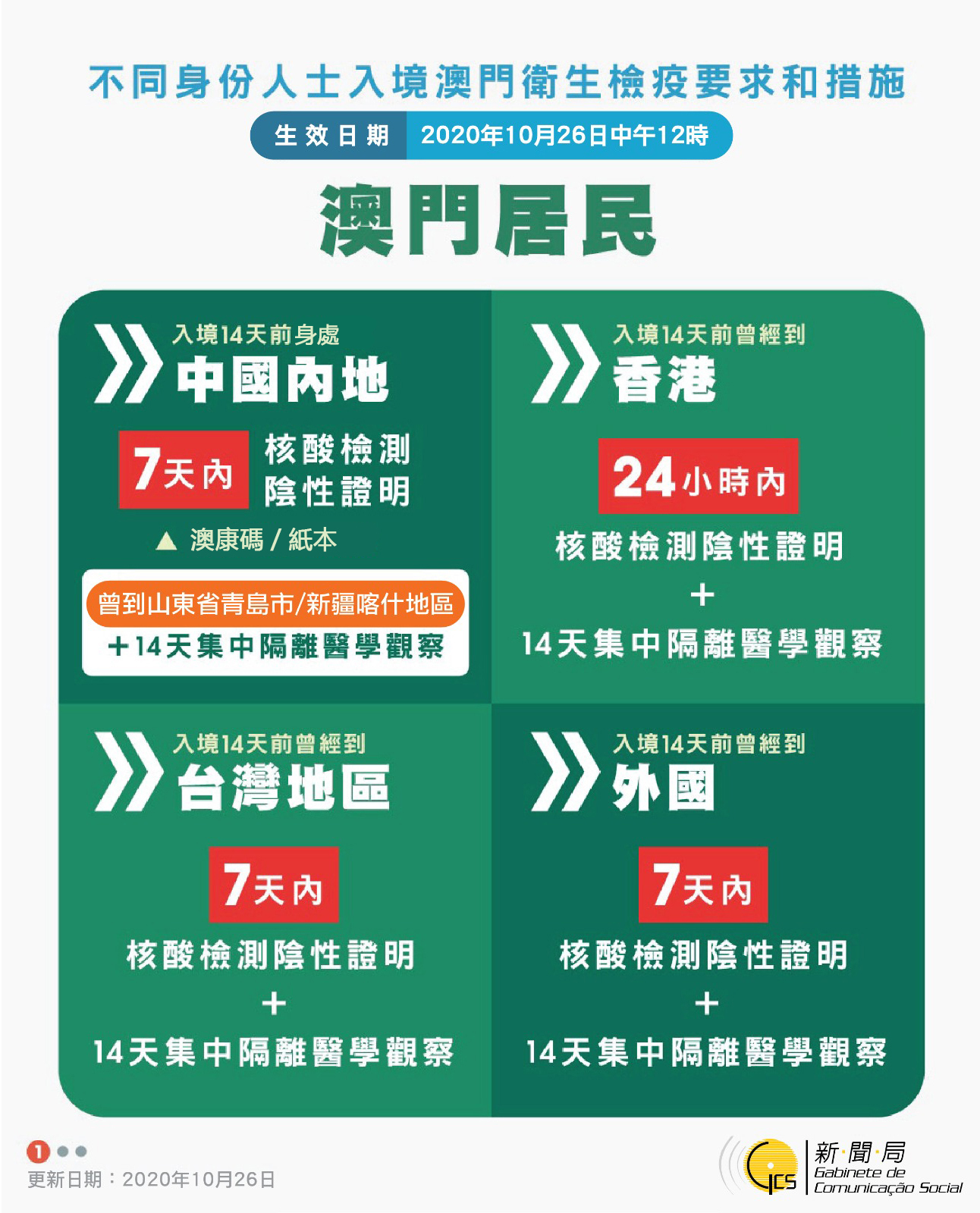 【圖文包】最新入境澳門衛生檢疫要求和措施