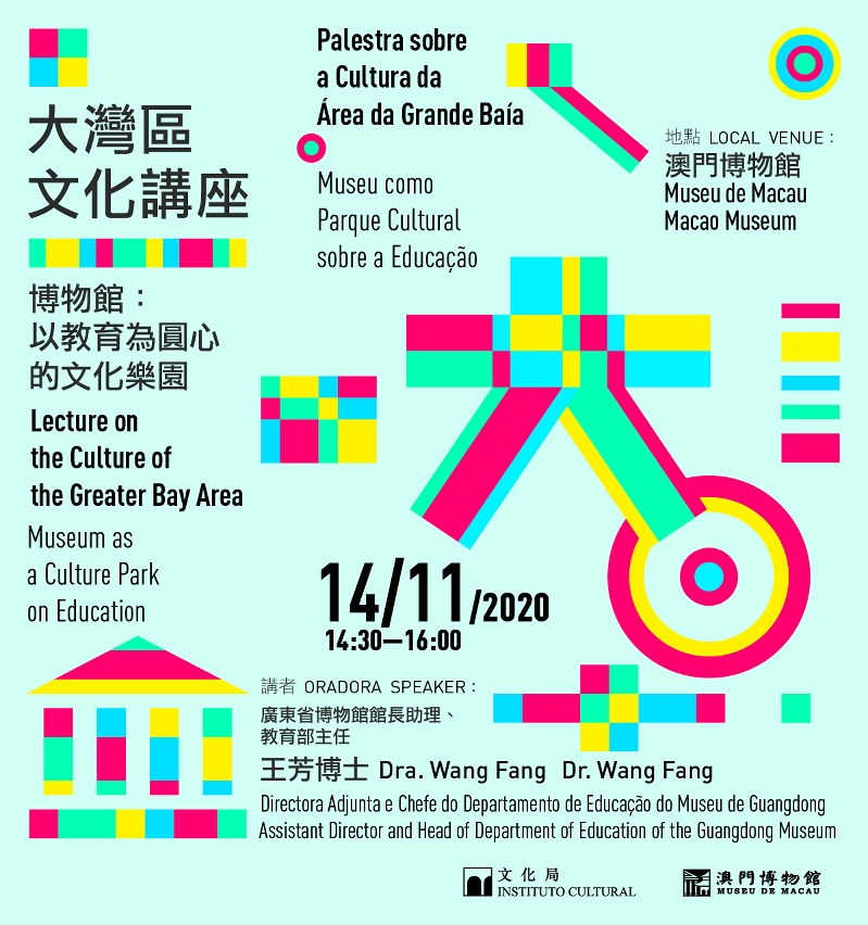 為深化與大灣區城市的文化交流,文化局將於11月14日(星期六)下午2時半至4時在澳門博物館演講廳舉辦“大灣區文化講座”,費用全免,歡迎市民報名參與。