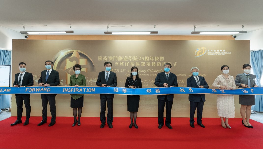 澳門旅遊學院於今天(11月5日)在氹仔校區銀禧樓舉行慶祝澳門旅遊學院25周年校慶暨氹仔校區銀禧樓啟用儀式。典禮由社會文化司司長歐陽瑜、國家文化和旅遊部副部長張旭、中央人民政府駐澳門特別行政區聯絡辦公室羅永綱副主任、中華人民共和國外交部駐澳門特別行政區特派員公署王冬署理特派員、澳門旅遊學院校董會主席陳澤武、副主席呂耀東、院長黃竹君、校友會會長歐文道及學生代表劉浩澄主禮,並邀請政府部門、高等院校、獎學金機構、業界及教職員等出席啟用儀式。