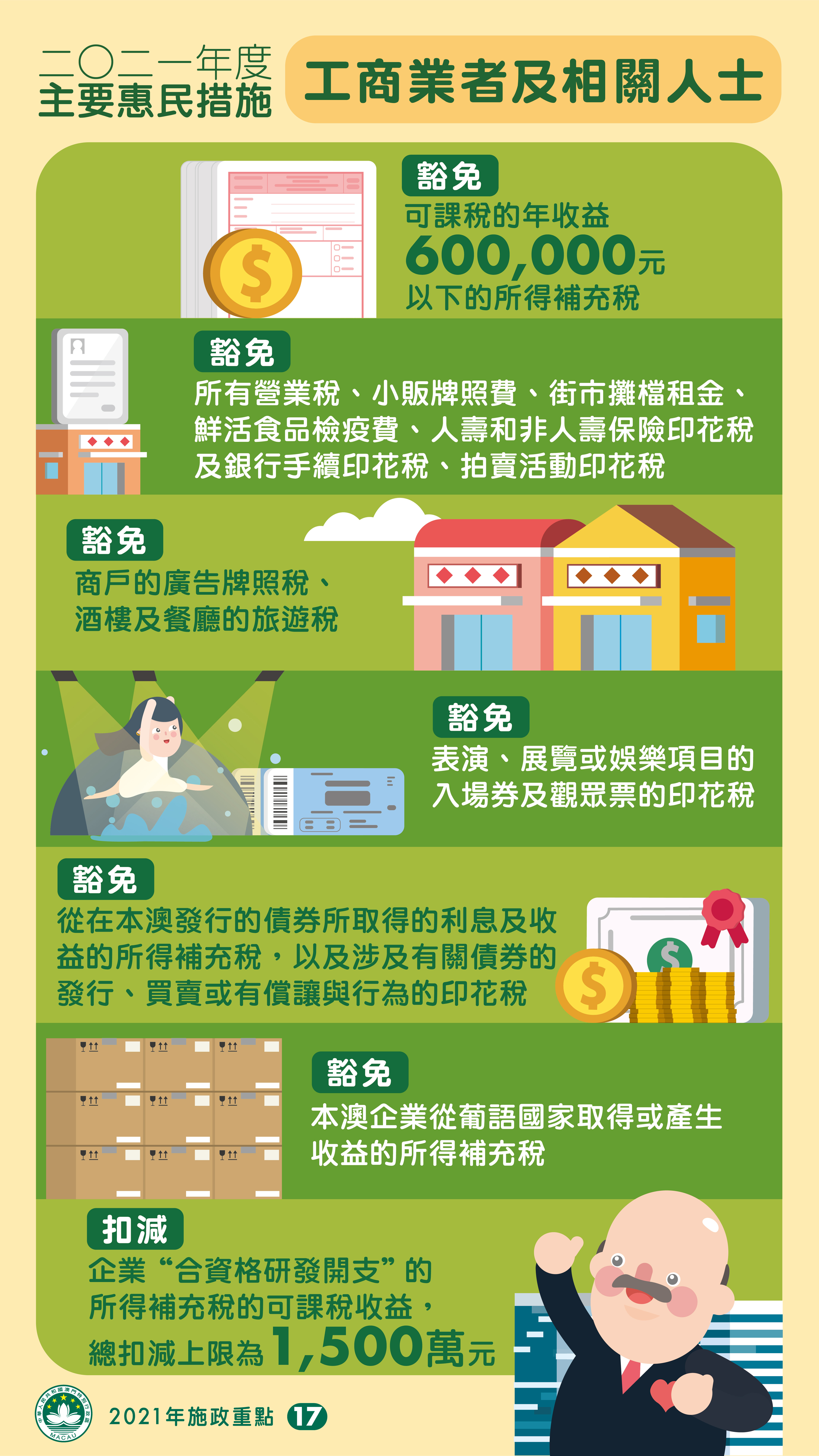 2021年度的主要惠民措施:工商業者及相關人士