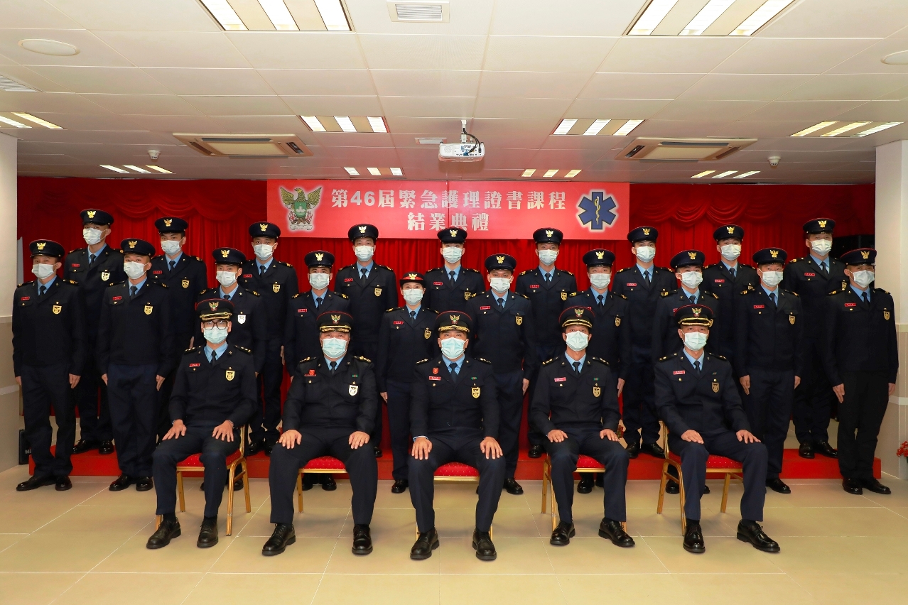 消防局《第46屆緊急護理證書課程》於2020年11月17 日舉行結業儀式,儀式由消防局鄺逸富 代副局長擔任主禮嘉賓,並致詞勉勵結業學員須時刻認真履行救急扶危之重任,緊記自己的職責,為市民提供優質的救護服務。
