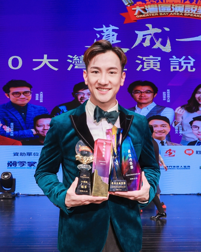 澳門理工學院中葡翻譯學士學位課程學生周啓陽日前參加由澳門我是演講家協會、共青團廣州市南沙區委員會,以及廣州市南沙區青年聯合會共同主辦的“2020大灣區演說家大賽”,奪得全場總冠軍、公開組冠軍、最佳內容獎以及最具正能量獎合共四項大獎。