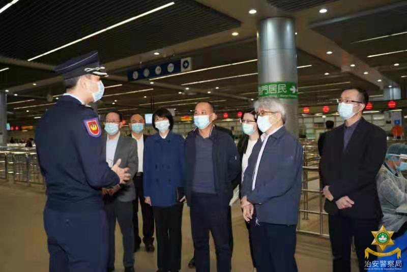 在各個出入境事務站,領導及主管一行檢視了口岸防疫設施、車道安排、健康碼檢查區、人員分流區等。詳細聽取出入境事務站主管及衛生局人員關於疫情下口岸管控工作的匯報,瞭解居民和旅客轉換健康碼及通關流程、健康碼與出入境系統的關聯和運作等。視察過程中兩位領導提出了各項優化工作的意見和建議;指出本澳疫情防控工作雖然取得階段性成果,但周邊地區疫情仍然波動,防控工作不能鬆懈,大家要做好“外防輸入、內防反彈”的工作。