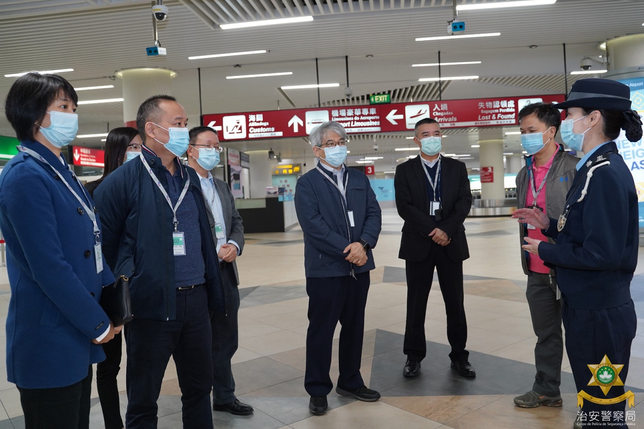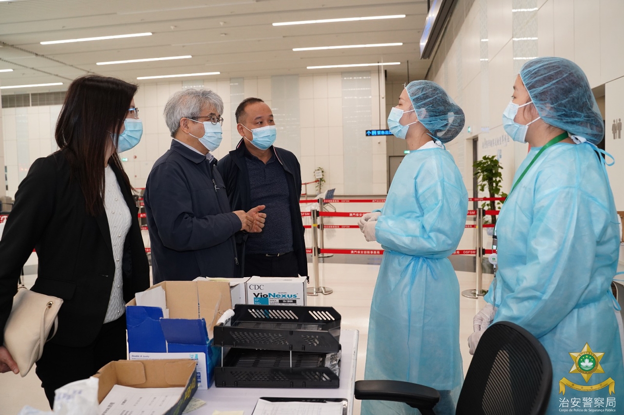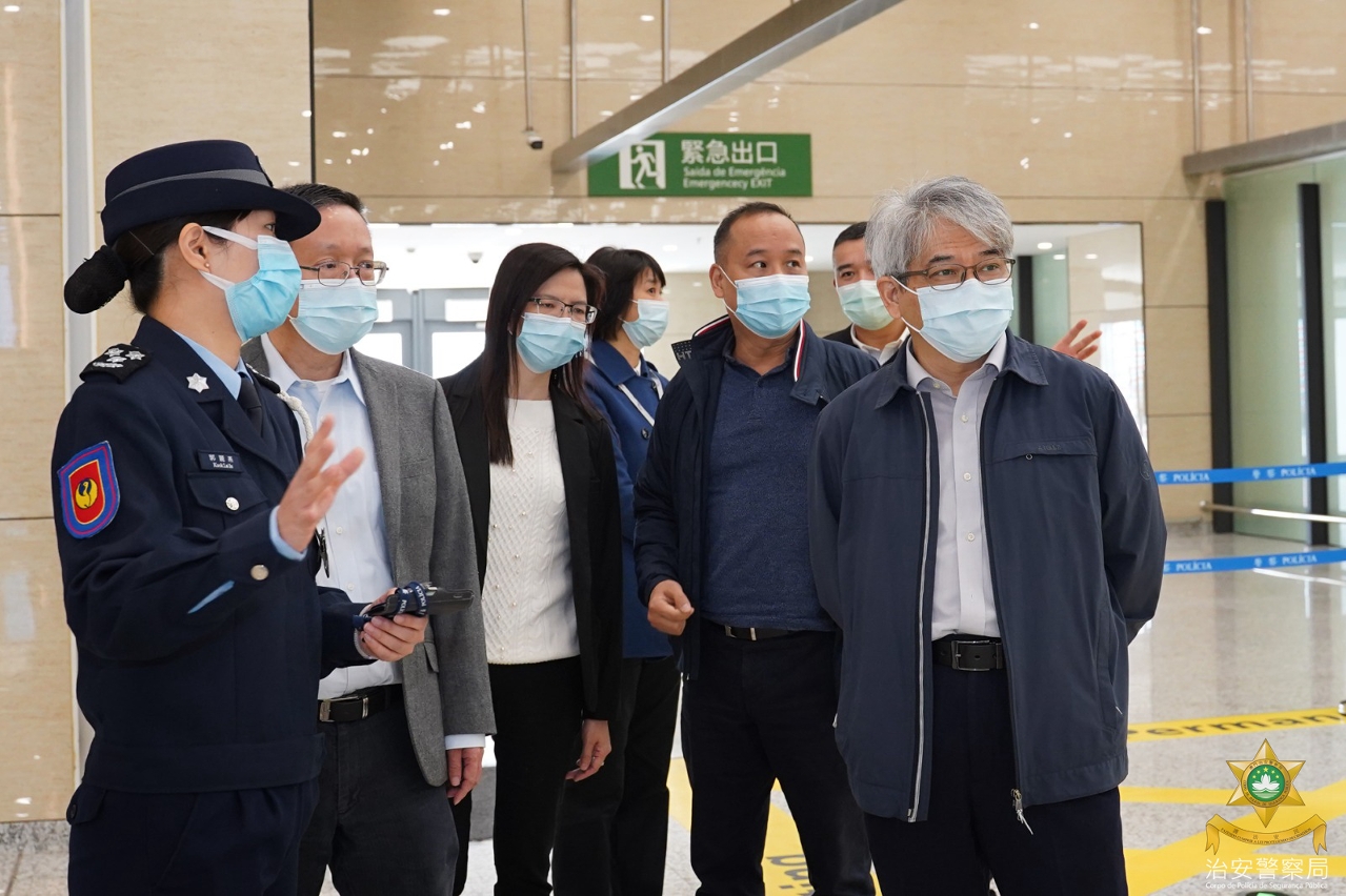 為進一步做好口岸通關及防疫措施,12月6日上午,衛生局局長李展潤、治安警察局局長吳錦華、相關官員及出入境事務的主管,前往關閘、港珠澳大橋、澳門國際機場及橫琴口岸澳門口岸區,實地視察本澳各項出入境及防疫措施的落實情況,指示完善及優化有關工作,並感謝各位前線同事及鼓勵他們繼續堅守崗位,對疫情保持警惕,做好常態防控。
