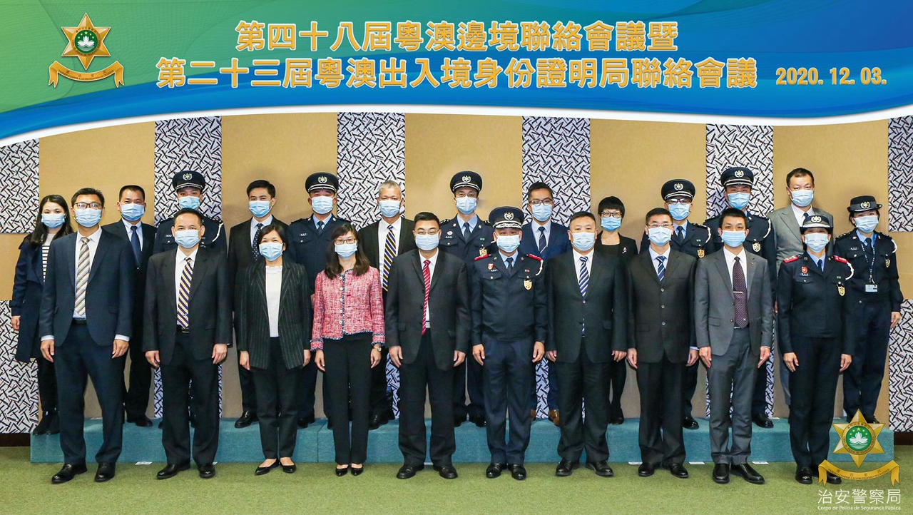 2020年12月3日下午,在治安警察局出入境事務大樓召開了“第48屆粵澳邊境聯絡暨第23屆粵澳出入境身份證明局聯絡會議"。廣東省公安廳楊日華常務副廳長、中央駐澳聯絡辦公室警聯部宋東翔副部長、出入境管理局盧少琴局長、珠海出入境邊防檢查總站鄭戈處長、治安警察局吳錦華局長及身份證明局黃寶瑩局長等出席了會議。