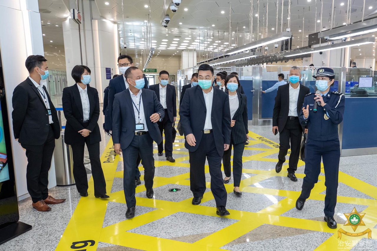 此外,廣東省公安廳代表團專程參觀了橫琴口岸澳門口岸區,實地視察口岸的疫情預防監控工作、珠澳邊檢“合作查驗、一次放行"新通關模式的應用及海關監察儀器的操作等;同時聽取在該口岸可為旅客辦理入境內地簽證的新舉措、輪候通道智慧化管理及該口岸未來發展規劃等介紹。代表團對該口岸的安全管理及通關設備給予高度評價,並期待和澳門同仁繼續加快探討下階段的通關便利合作。