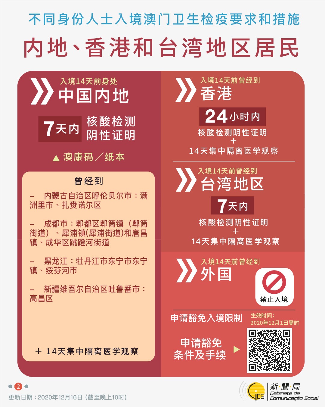 【圖文包】最新入境澳門衛生檢疫要求和措施