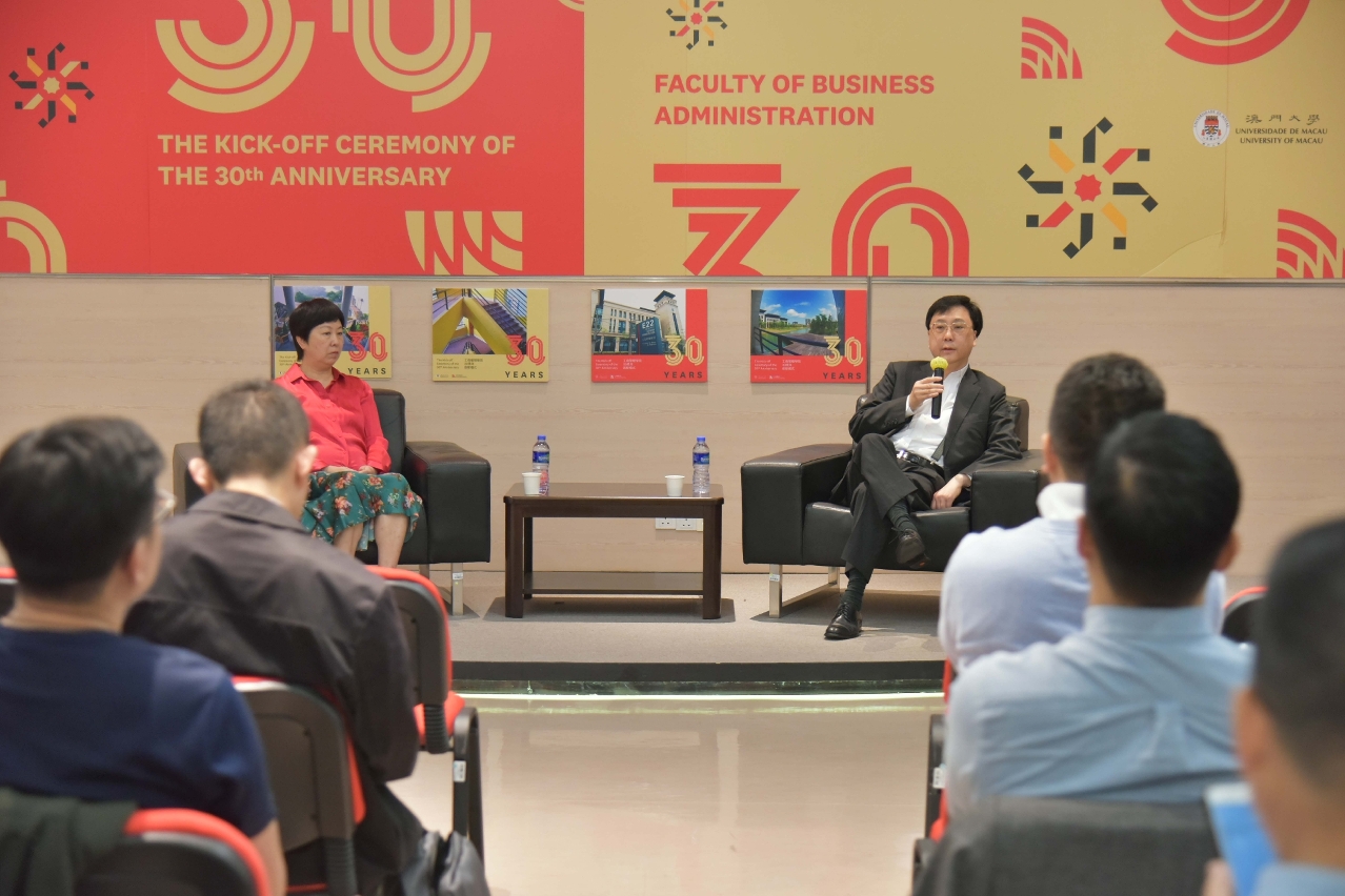 澳門大學工商管理學院舉辦“澳門金融的規劃和發展”分享會。澳門金融管理局行政管理委員會主席陳守信分享了其見解,並與工商管理博士課程(DBA)的首兩屆在讀學生互動交流,討論澳門金融現況。