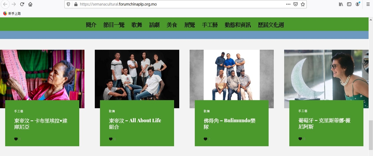 常設秘書處舉辦文化週逾十年,首次利用秘書處官方網站打造文化交流虛擬平台,播放中國內地、澳門以及9個葡語國家及地區的視頻,內容包括“藝團歌舞表演”、“手工藝展示”、“葡語國家美食烹飪教學”、“話劇節目”。其中“葡語國家美食烹飪教學”節目內容的點擊率最高,既證明了美食是中國與葡語國家和地區人文交往的重要元素之一,也再次展示了澳門 “美食之都”的亮麗名片。