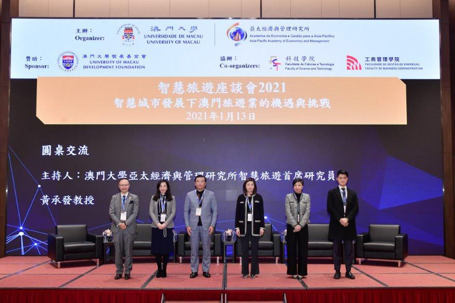 為加強社會各界對智慧旅遊的暸解,澳門大學亞太經濟與管理研究所今(13)日舉辦“智慧旅遊座談會2021—智慧城市發展下澳門旅遊業的機遇與挑戰”。澳門旅遊局、珠海市文化廣電旅遊體育局、旅遊業界代表與澳大代表就當下澳門旅遊業的問題與機遇作專題探討,促進政府、業界及學術界人士進行了深入交流互動。