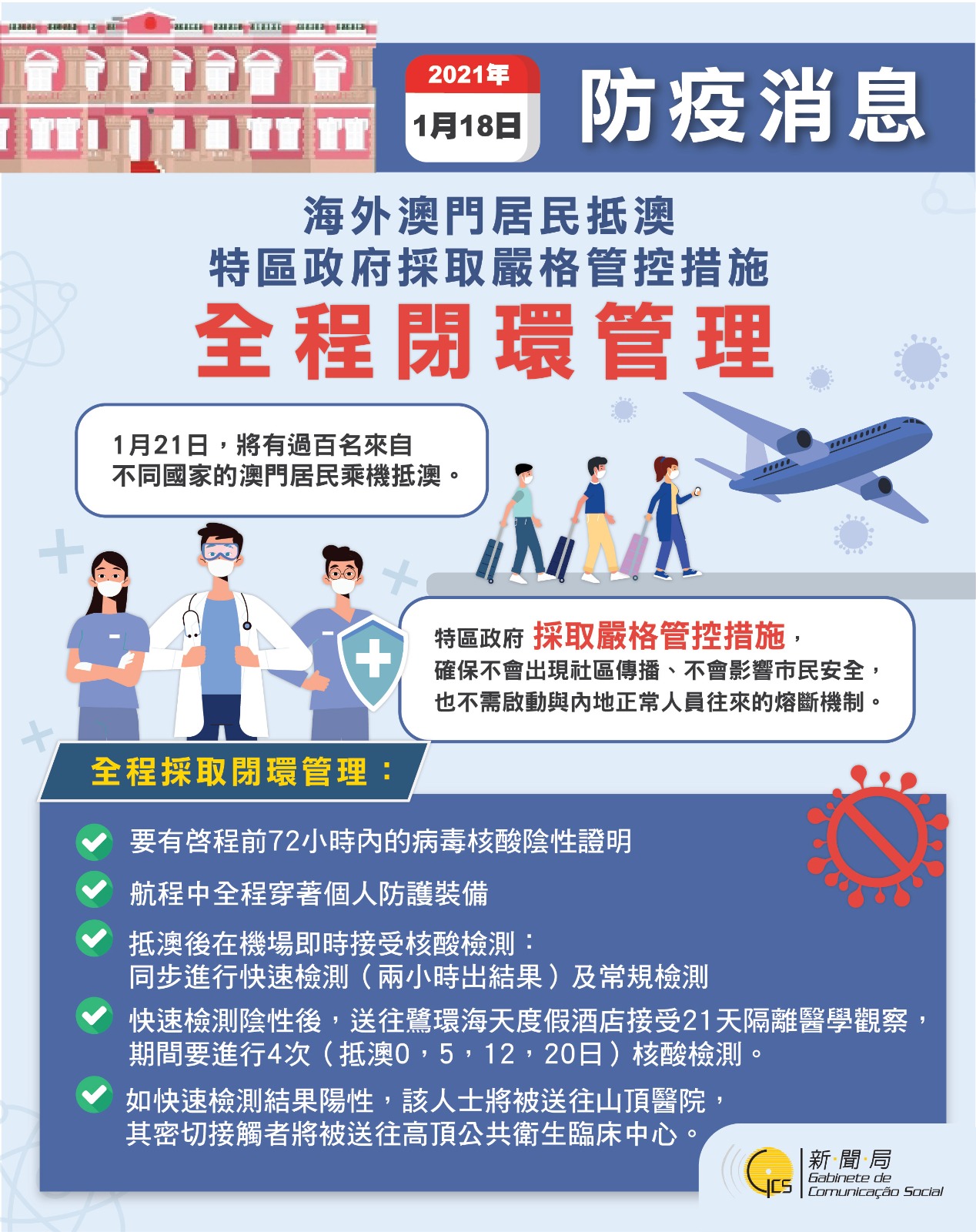 1月19日12時起曾到吉林省長春巿的二道區、綠園區或北京市大興區天宮院街道的人士須接受14天醫學觀察