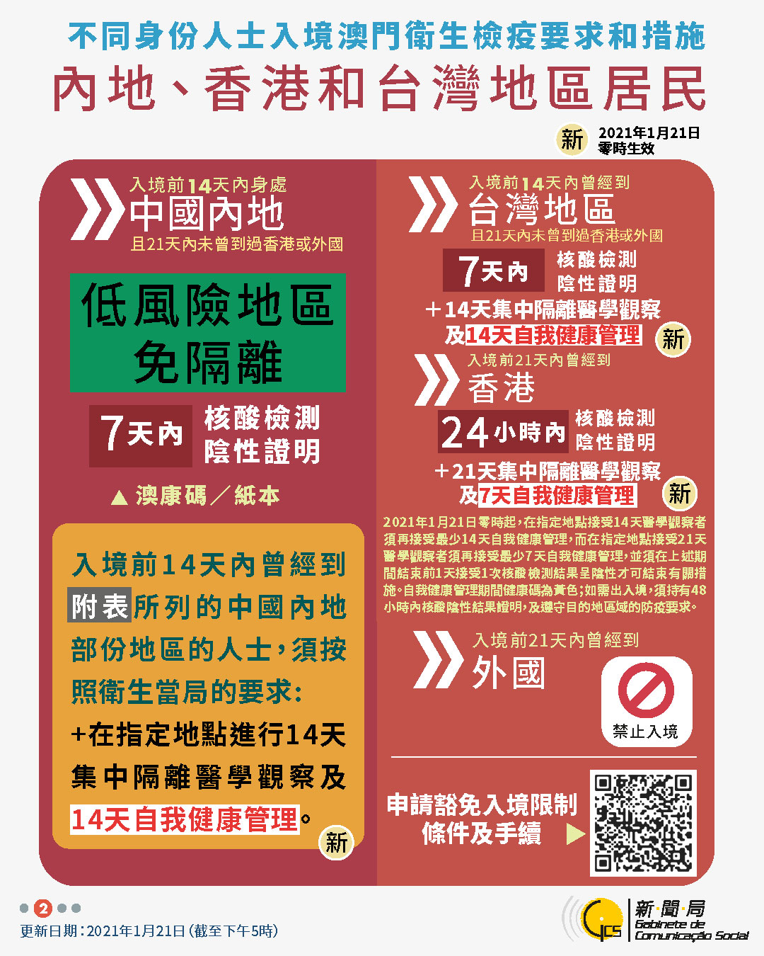【圖文包】2021/01/21最新入境澳門衛生檢疫要求和措施