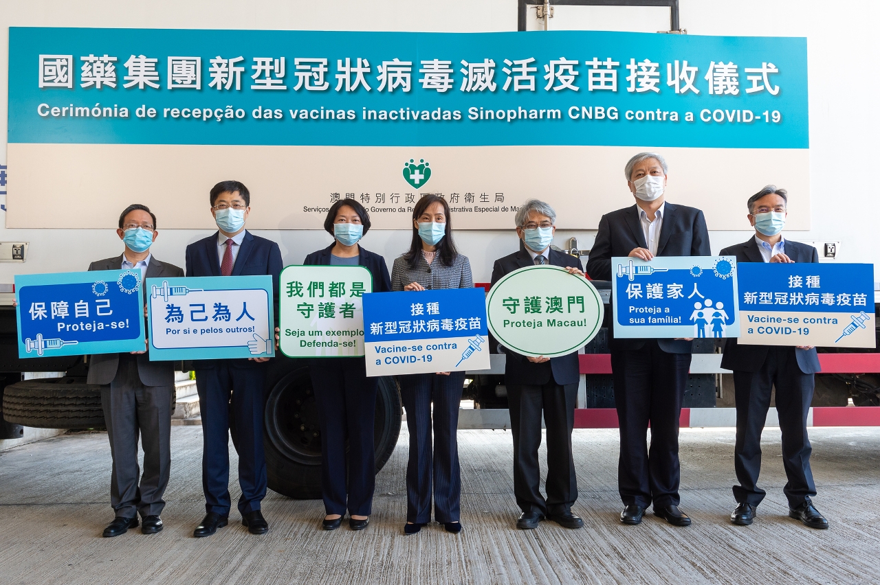 此批疫苗由北京以陸路經過30多小時運抵本澳,運輸過程得到了中聯辦、南光(集團)有限公司及相關部門的全力協助。在衛生局藥物事務廳稽查人員完成入口檢查手續後,南光集團傅建國董事長移交國藥集團新型冠狀病毒滅活疫苗,由衛生局李展潤局長簽署接收疫苗文件。出席儀式的還有中聯辦宣傳文化部萬速成部長、殷汝濤副部長;衛生局陳永華副局長、藥物事務廳蔡炳祥廳長、疾病預防控制中心林松主任等。