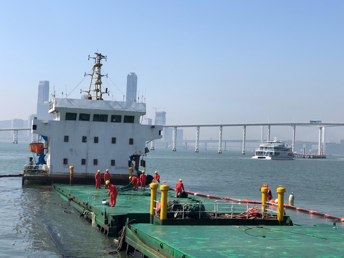 意外發生後,海事局一直與船東保持緊密溝通,並要求船東盡快開展打撈工作。在局方協調下,打撈船隊的潛水員於上周完成了船隻的水下勘探工作,評估了船隻的破損情況、船隻下陷的深度等,以便安排打撈方案和所需的船隊設備。期間局方船隻和人員一直在場戒備和清理滲出的油污。