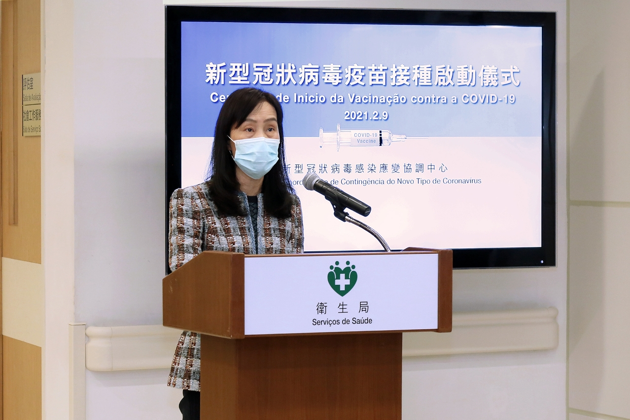 社會文化司歐陽瑜司長致詞表示,本澳受到新冠肺炎疫情影響逾一年,在各政府部門通力合作、社會各界及市民高度配合下,使疫情的防控工作取得了階段性的成效。雖然澳門正處於低風險水平,但全球疫情仍然不明朗,接種疫苗是目前預防新冠肺炎疫情最有效的途徑,因此,在澳門啟動疫苗接種計劃,可建立社會免疫屏障,為市民提供更大的保障。目前,全球各地的疫苗供應十分緊張,隨着國藥集團新型冠狀病毒滅活疫苗上市,相信可為持續的疫情防控工作提供有力的支撐。而澳門特區在國家的大力支持和關懷下,通過國務院港澳事務辦公室及中央人民政府駐澳門特別行政區聯絡辦公室的不懈協調,澳門獲分配50萬劑國藥集團新型冠狀病毒滅活疫苗,首批10萬劑已於2月6日運抵澳門,餘下40萬劑亦將陸續抵澳,預計可滿足現階段市民對疫苗接種的需求。她並感謝國藥集團提供足夠的疫苗,以及南光集團快速完成運送的任務。今天,特區政府正式啟動新冠病毒疫苗接種計劃,行政長官帶領各主要官員率先接種疫苗,是用行動向市民說明特區政府對新冠病毒疫苗的信心,冀廣大市民嚮應政府呼籲,用行動保護自己,保障家人,守護澳門,踴躍接種。她表示,特區政府已為全澳居民訂購了充足的疫苗,並已設疫苗資訊專頁,讓居民充份了解,她強調,接種疫苗以居民自願及可選擇疫苗種類為前提,冀共同為澳門社區建立免疫屏障。
