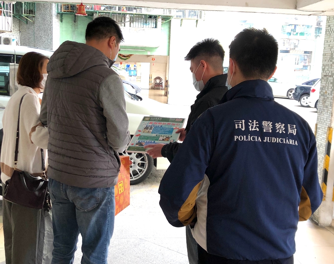 農曆新年期間,為預防罪案發生,司法警察局持續執行由警察總局統籌的冬防行動,於本澳各區進行防罪巡查,亦派出刑偵人員到工業大廈及勞工宿舍宣傳防罪,提醒工廈管理人員及外地僱員做好防罪措施,勿讓不法份子有機可乘。