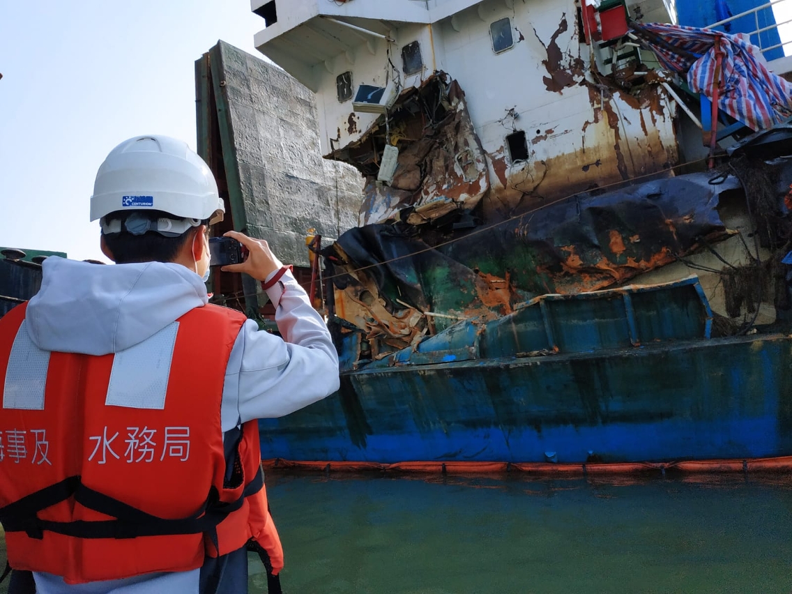 在局方人員登船檢驗,確定貨船沒有再次入水下沉的危險後,局方安排船隻引領打撈船隊及貨船於昨日晚上沿澳門水道離開,前往內地維修。海事局今日派船隻到事發現場跟進善後工作,包括清理現場的圍油欄等防污設備。連日來的打撈過程中,局方均有派船隻在現場戒備和協助,船舶交通管理中心亦透過無線電廣播提醒往來船舶注意有關情況及指揮船舶繞過打撈作業位置;局方感謝珠海海事局協助提供船東資料,以及在打撈作業期間播放安全通告,提醒往來船隻注意慢駛,確保通航安全。局方呼籲海事業界及航經船隻必須嚴格遵守海事法規,在航行期間須小心駕駛和加強瞭望,共同維護海上交通秩序及航行安全。