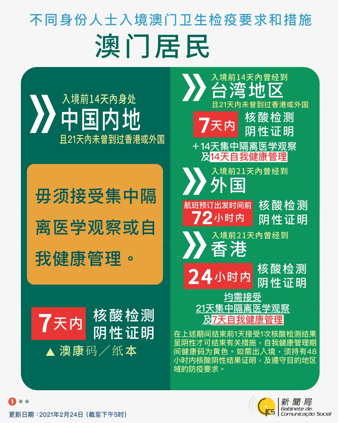 【圖文包】2021/02/24最新入境澳門衛生檢疫要求和措施